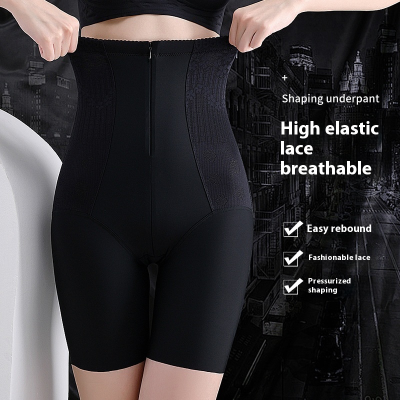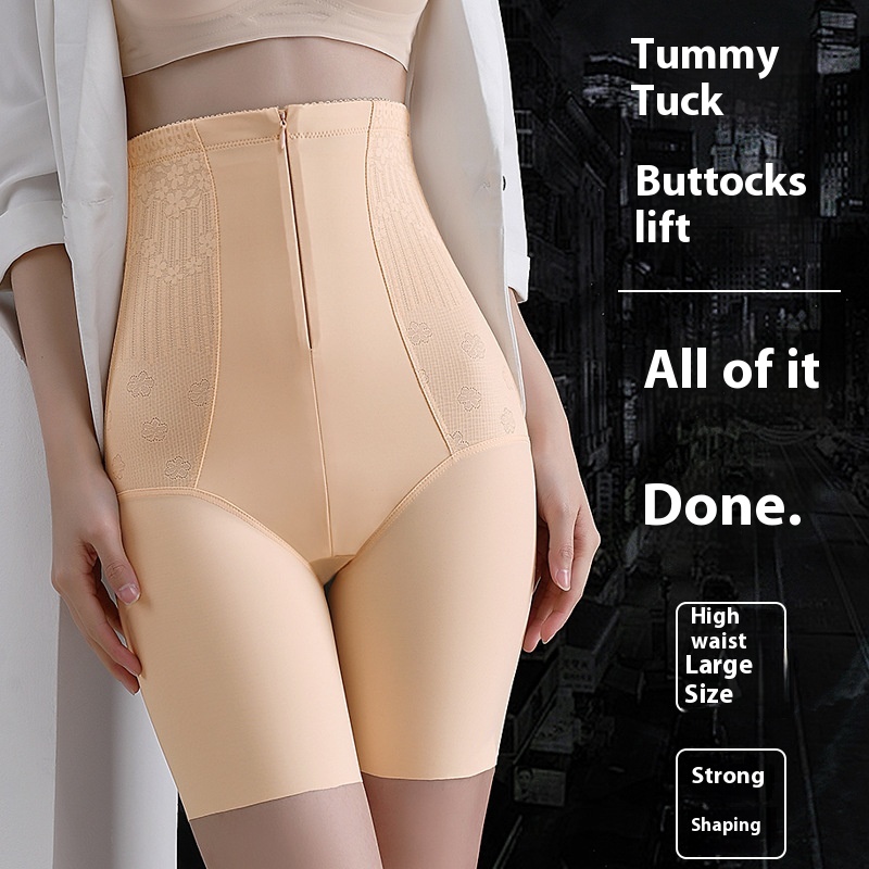 High-Waisted Jacquard Zipper Butt-Lifting Double-Layer Waist-Cinching Tummy Control Shapewear Plus-Size Seamless Body Shaping Panties For Women