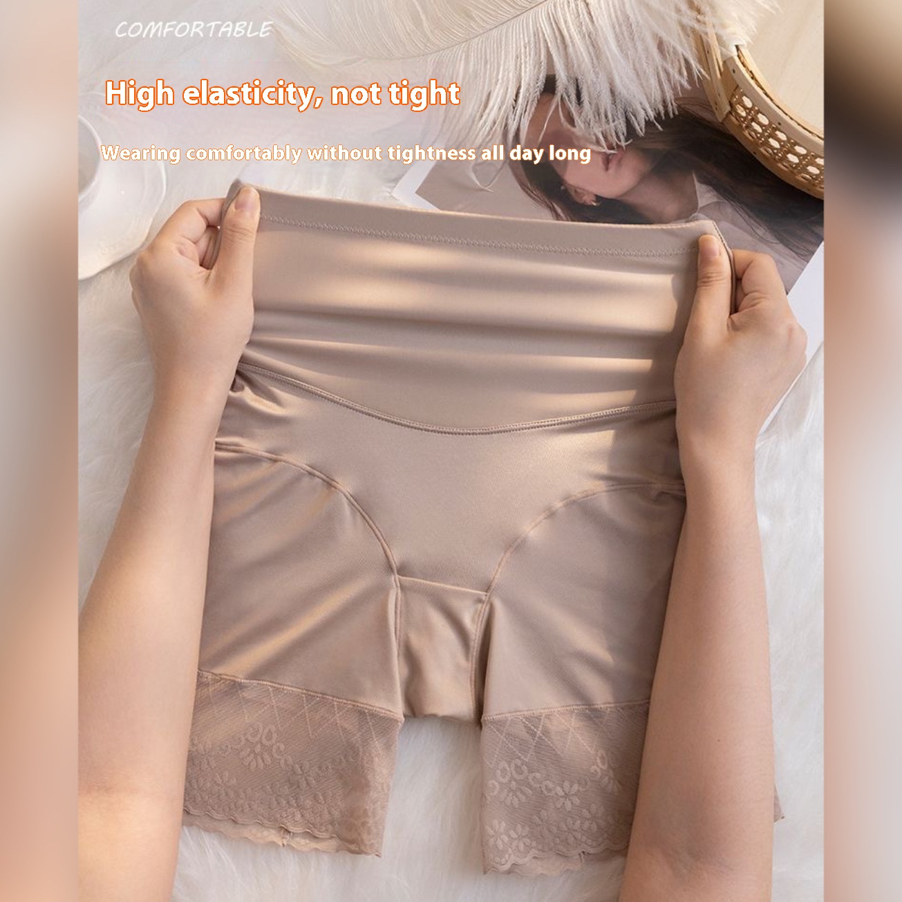 Plus Size Hip Lifting Pants Summer Thin Small Belly Shaping Hip High Waist Traceless Lace Stitching Safety Pants