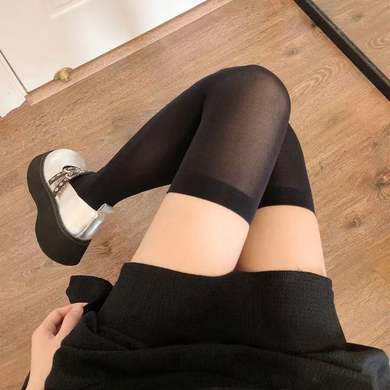 White Silk Pressure Over-the-Knee Socks Summer Thin Slim Ice Silk High-rise Thigh Black Silk Stockings Women's Velvet Japanese JK Stockings