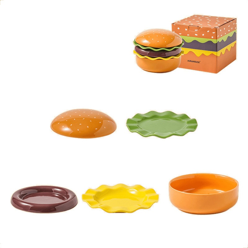 Hamburger-Shaped Plate And Bowl Set Ceramic Creative Tableware Dish Plate Dessert Plate Underglaze Color Bowl National