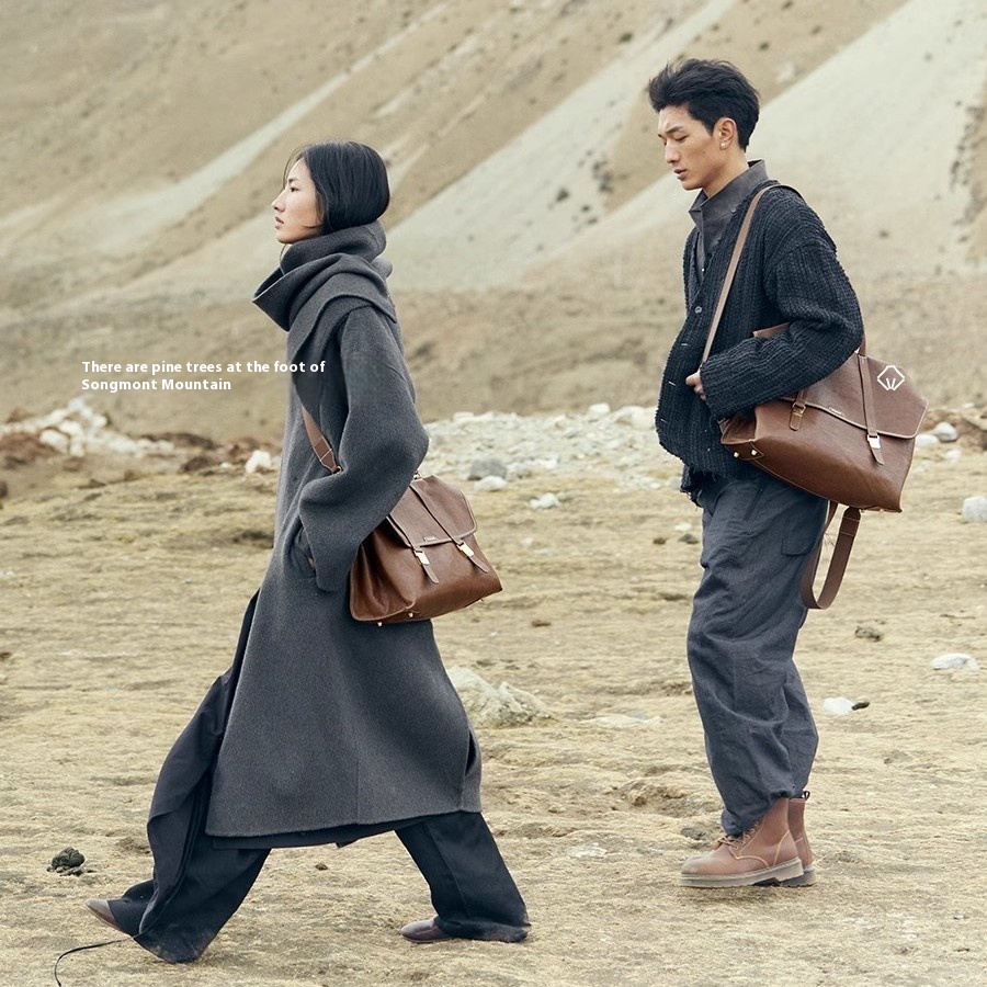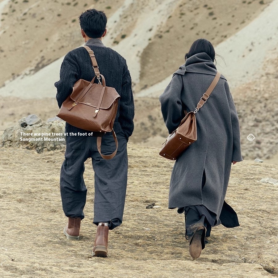 Song Hillside Songshan Travel Briefcase Gender-free Retro Vegetable Tanned Leather Crossbody Backpack