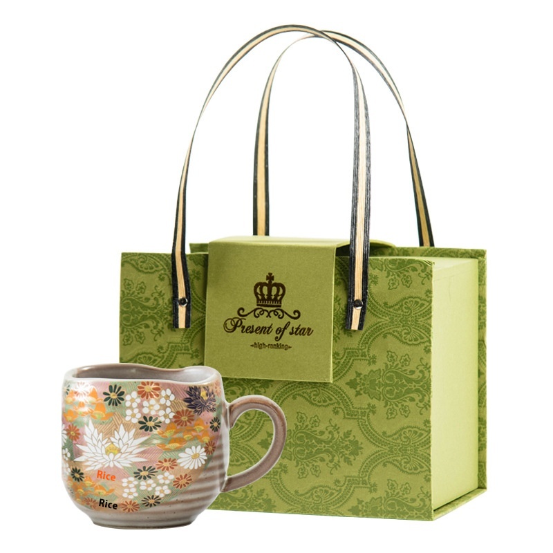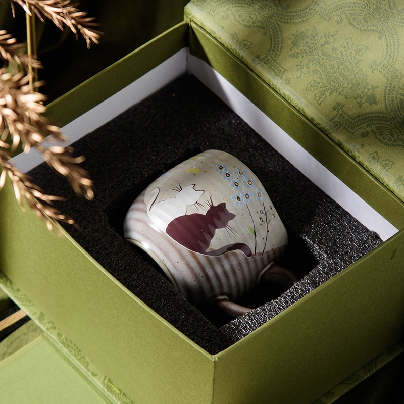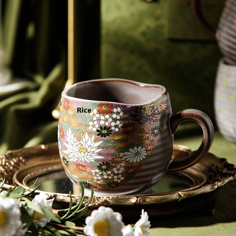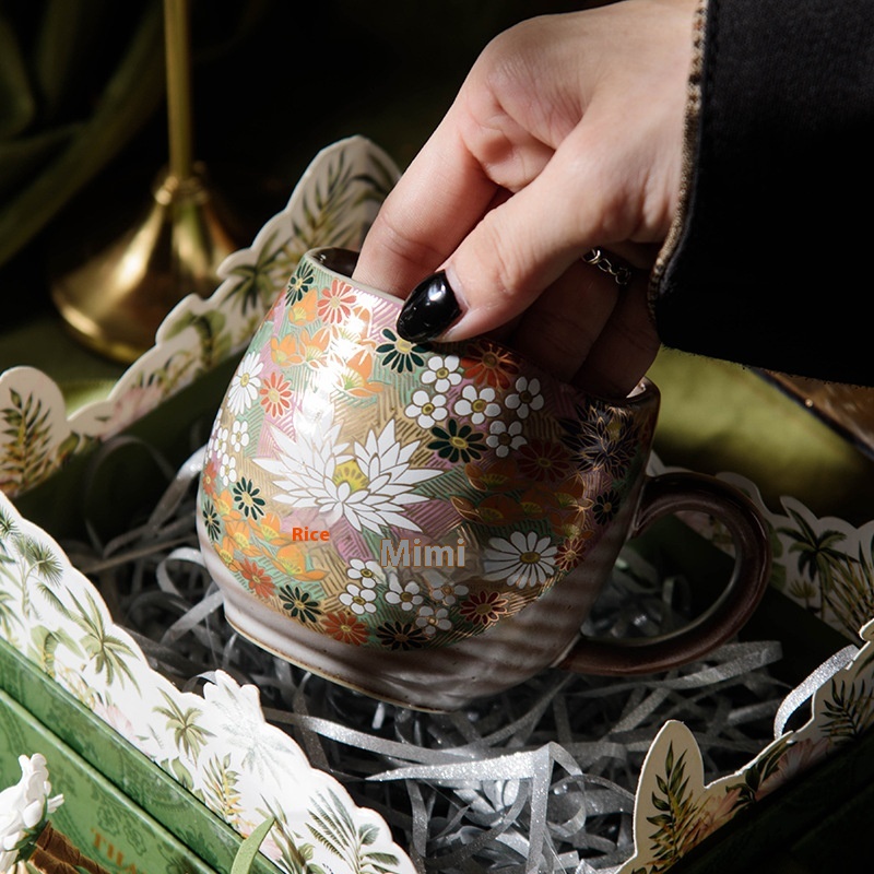 Japanese Style Jiugu Handmade Golden Flower Cross Mug Cat Coffee Cup Tea Cup Wedding Birthday Gift Household Cup