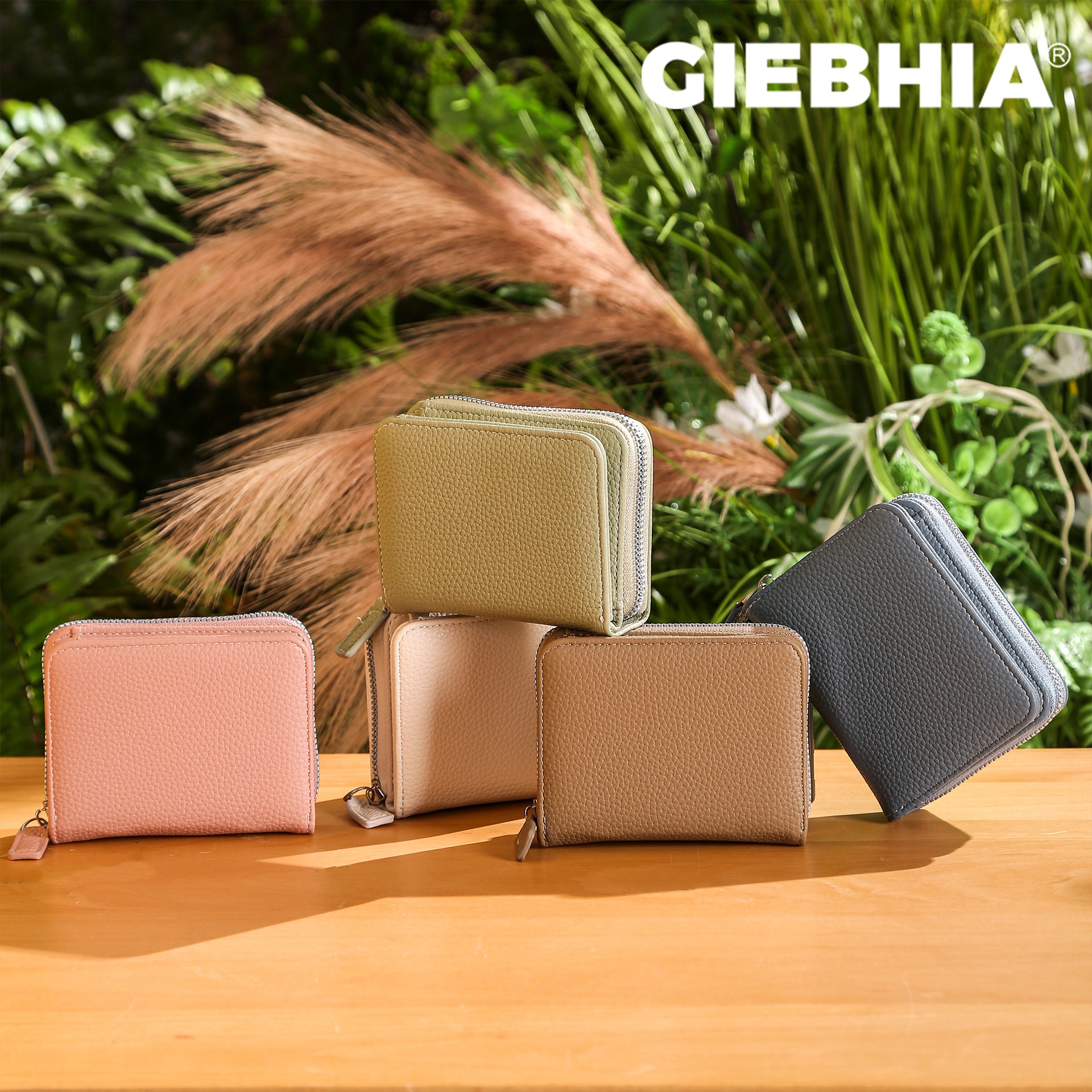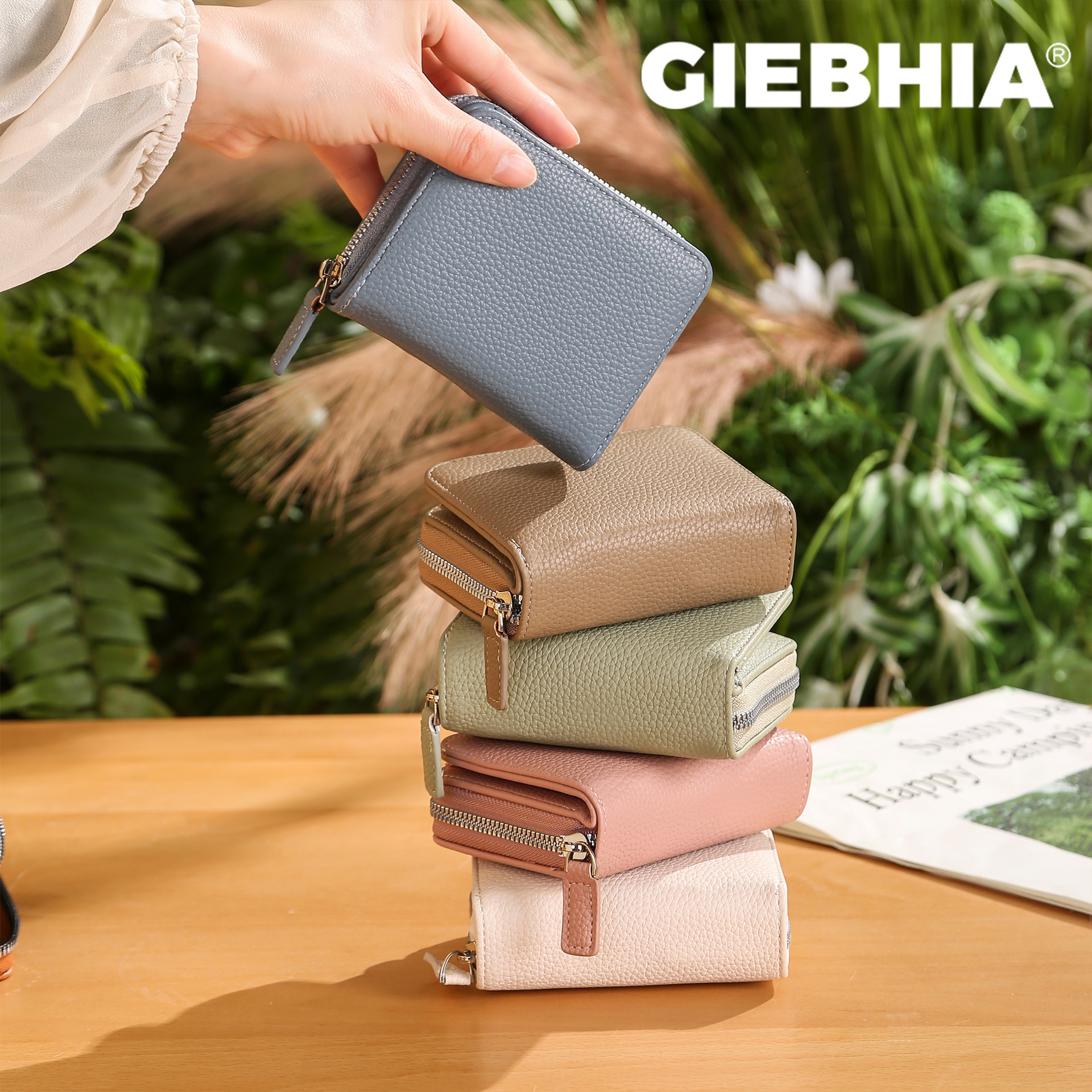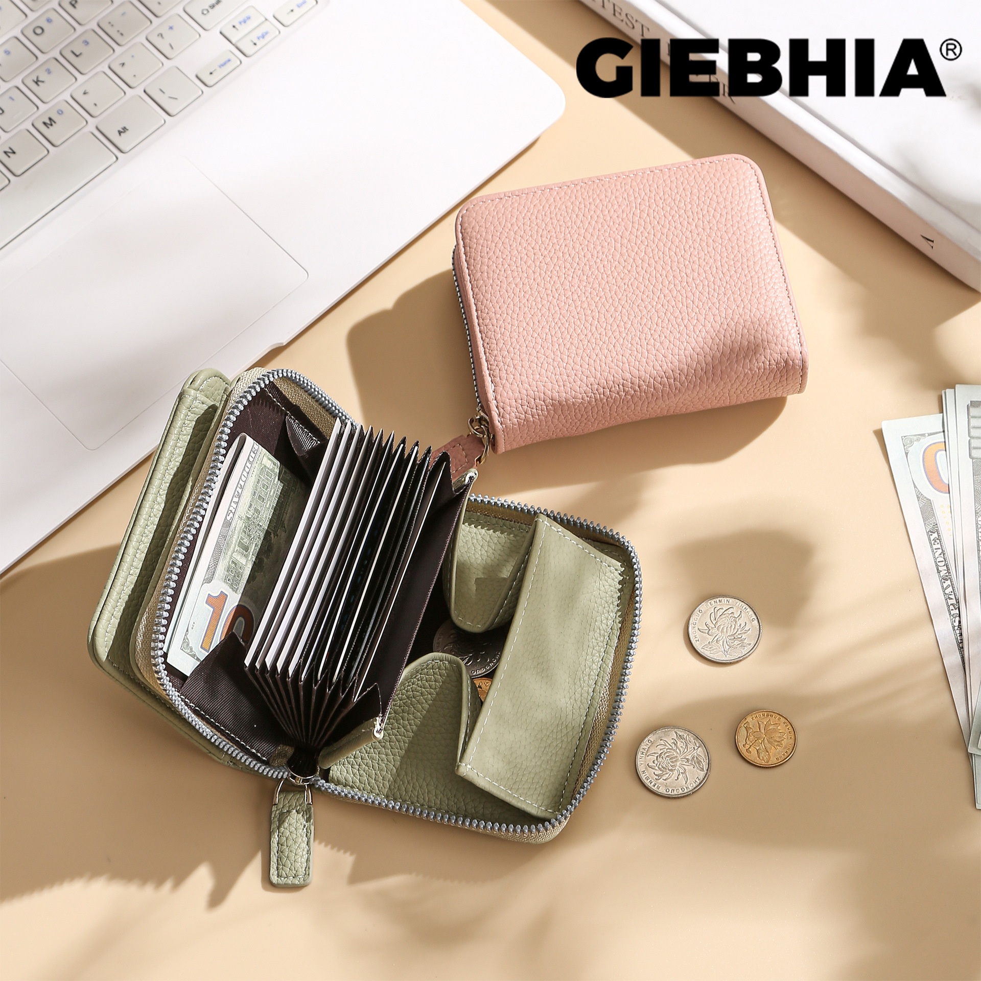 Giebhia Leather Texture Snap Organ Card Holder Japanese Style Coin Slot Multi-Functional Card Holder Wallet