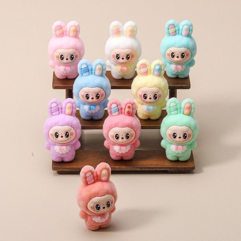 Flocked Bunny DIY Jewelry Resin Accessories Keychain Pendant Cute Blind Bag Accessories