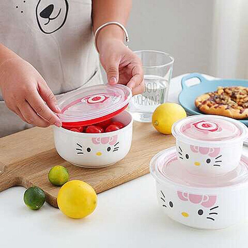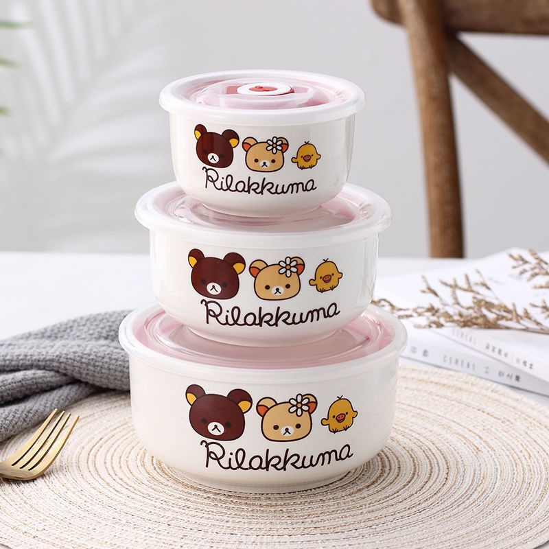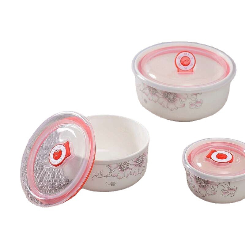Ceramic Three-piece Bowl 1-3 Packed Fresh-keeping Bowl Lunch Box Sealed Box Microwave Oven Special One Generation
