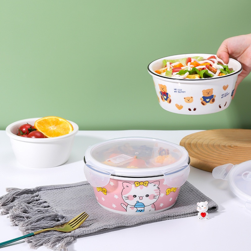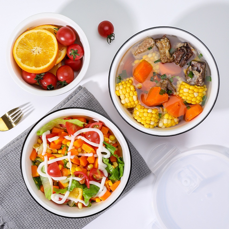 陶瓷保鲜碗三件套微波炉饭盒带盖冰箱便当盒大号泡面碗