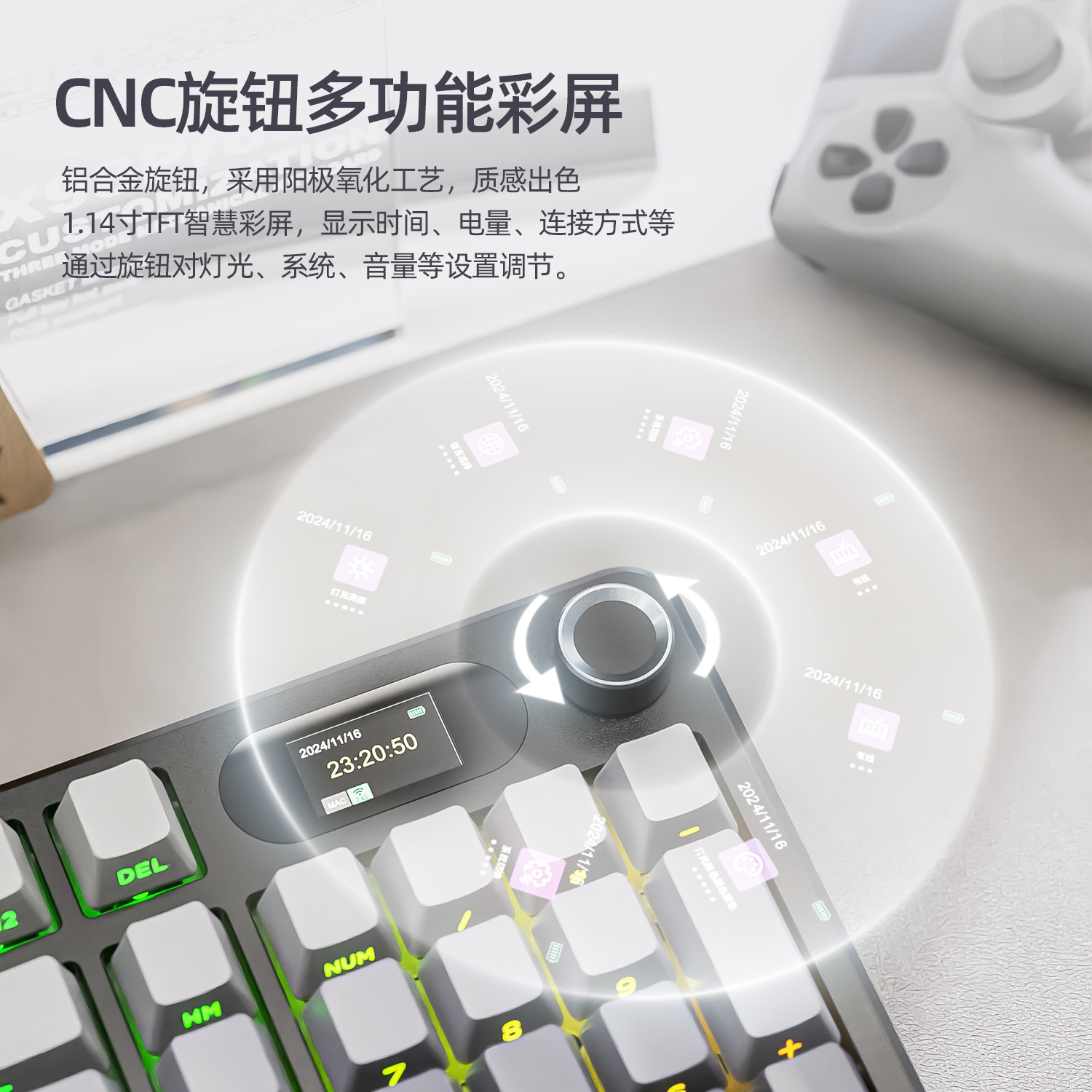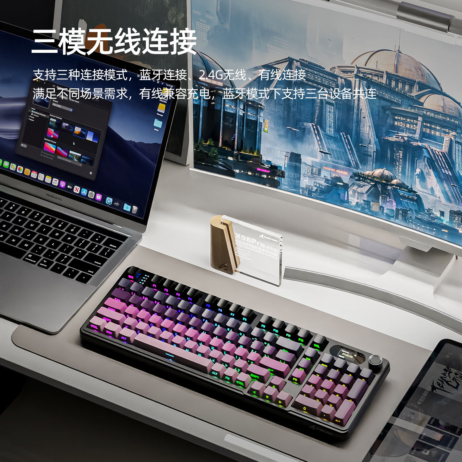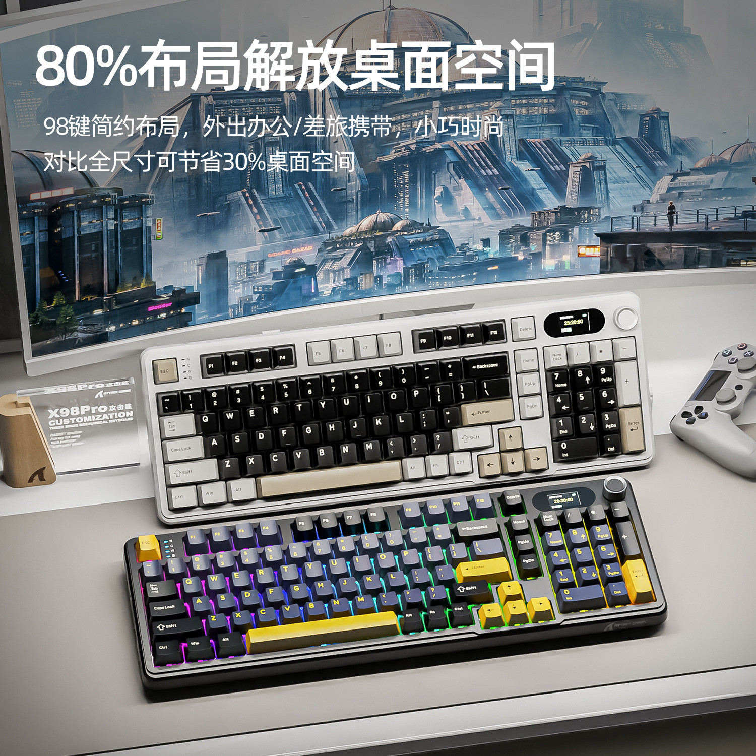 Attack Shark X98Pro Three-mode RGB Wireless Keyboard Side Engraved With Screen Bluetooth Gaming Mechanical Keyboard