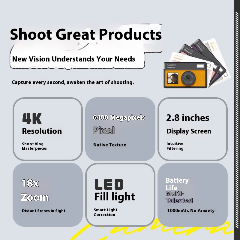 Smart Camera 4K High-Definition Student Digital Camera Campus Card Polaroid Kidsren's Portable Travel Camera