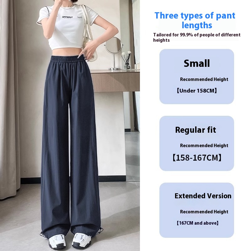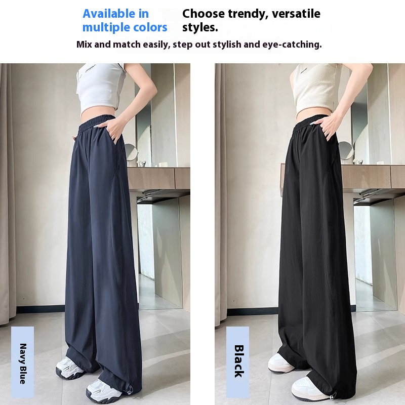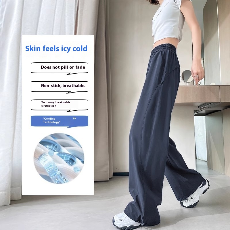 Ice Silk Quick-Drying Sports Pants For Women Summer Thin Loose Slimming Look Draped High-Waisted Workwear Straight Wide-Leg Pants For Women