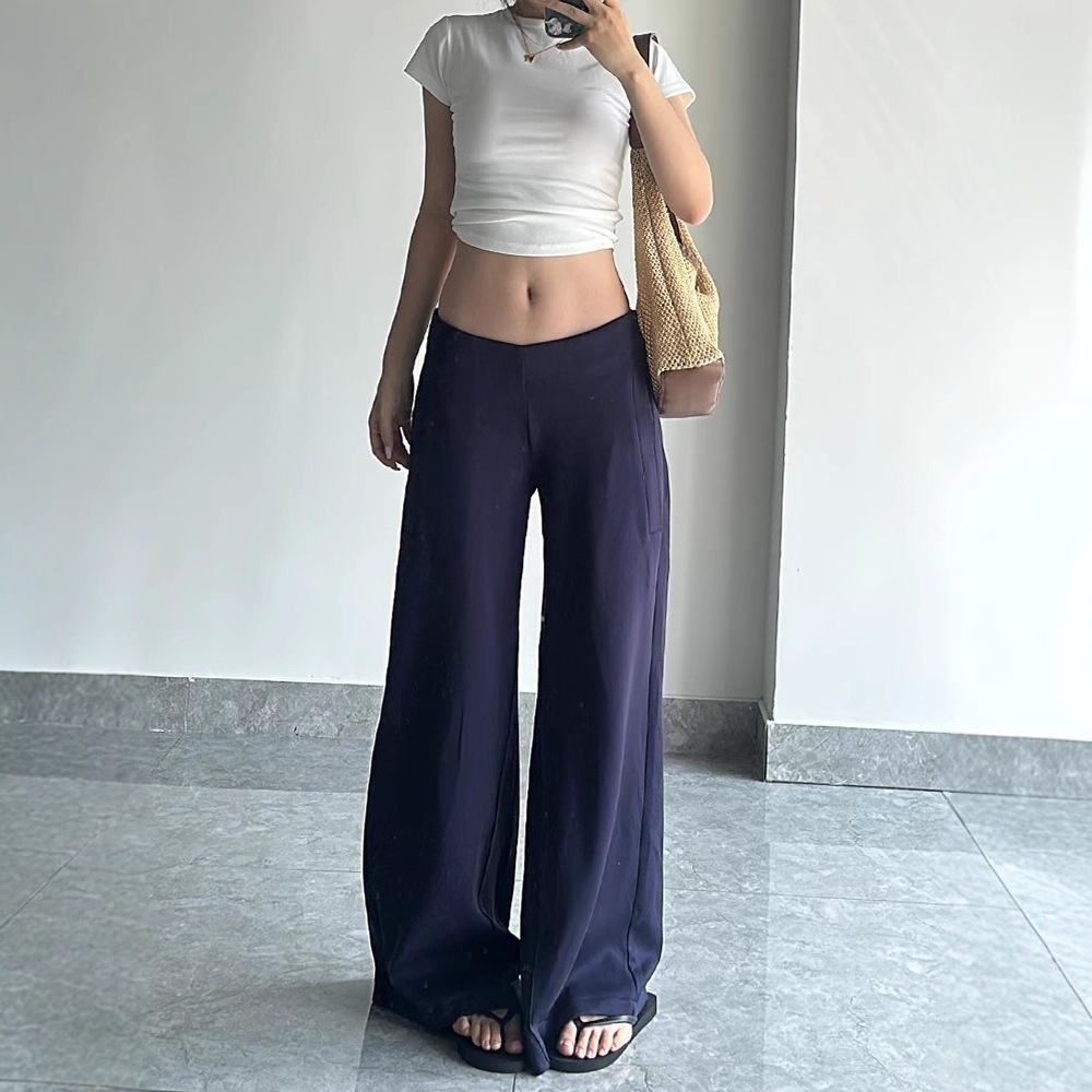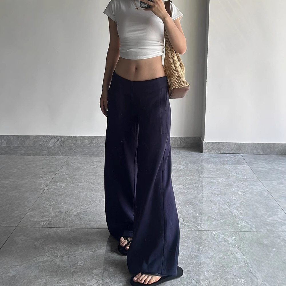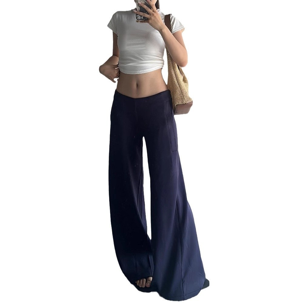 Autumn And Winter Fleece-lined Thickened Low Waist Wide Leg Casual Pants Women's Navy Blue Loose Dummy Pants Sports Pants