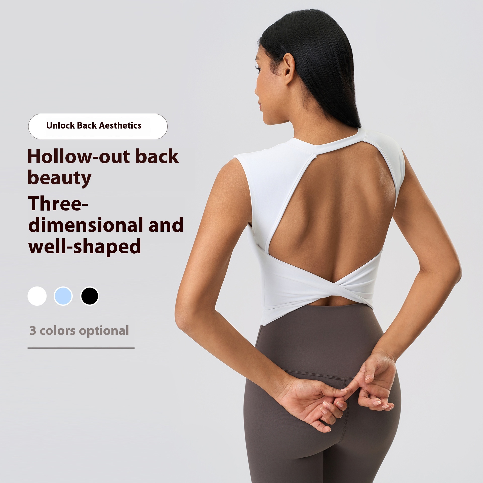 Yoga Clothes Sleeveless Top Women's Sexy Backless Short Waisted Slim Fitness Sports Vest With Chest Pad D25060