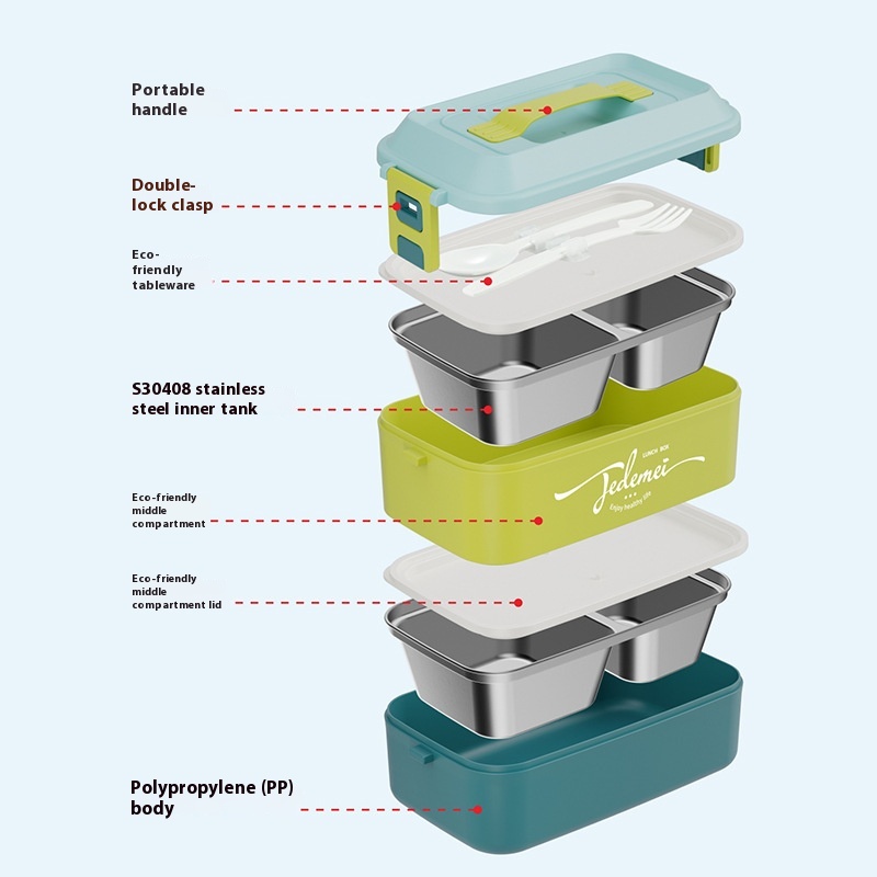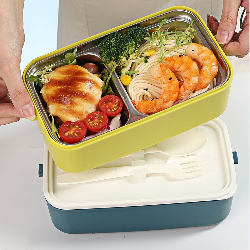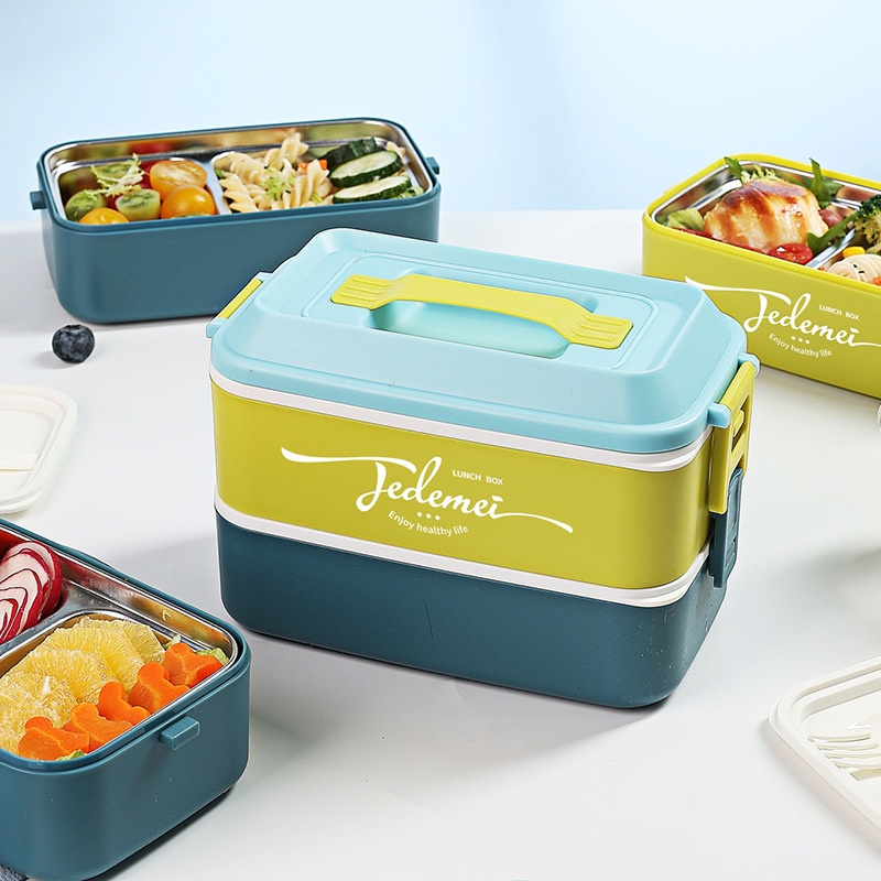 European-style Portable Double-layer Stainless Steel Lunch Box Divider Lunch Box For Students And Office Workers Divider Lunch Box
