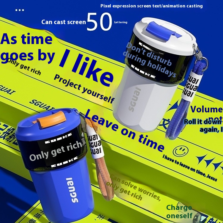 智能水杯咖啡杯礼物显示温度像素文字定 制刻字便携保温杯子