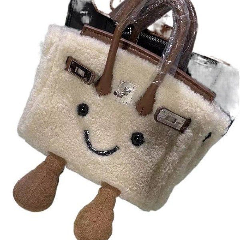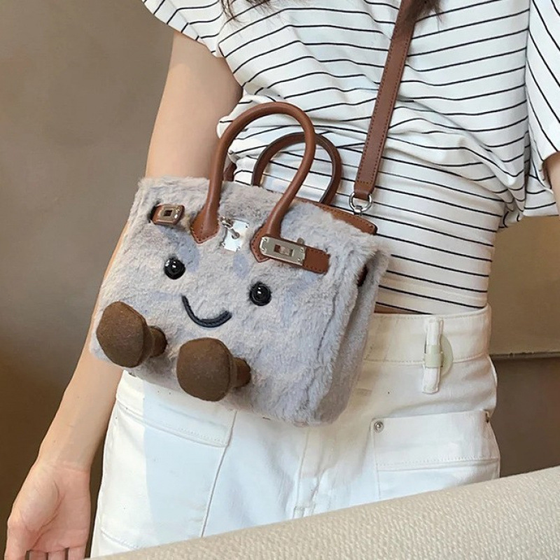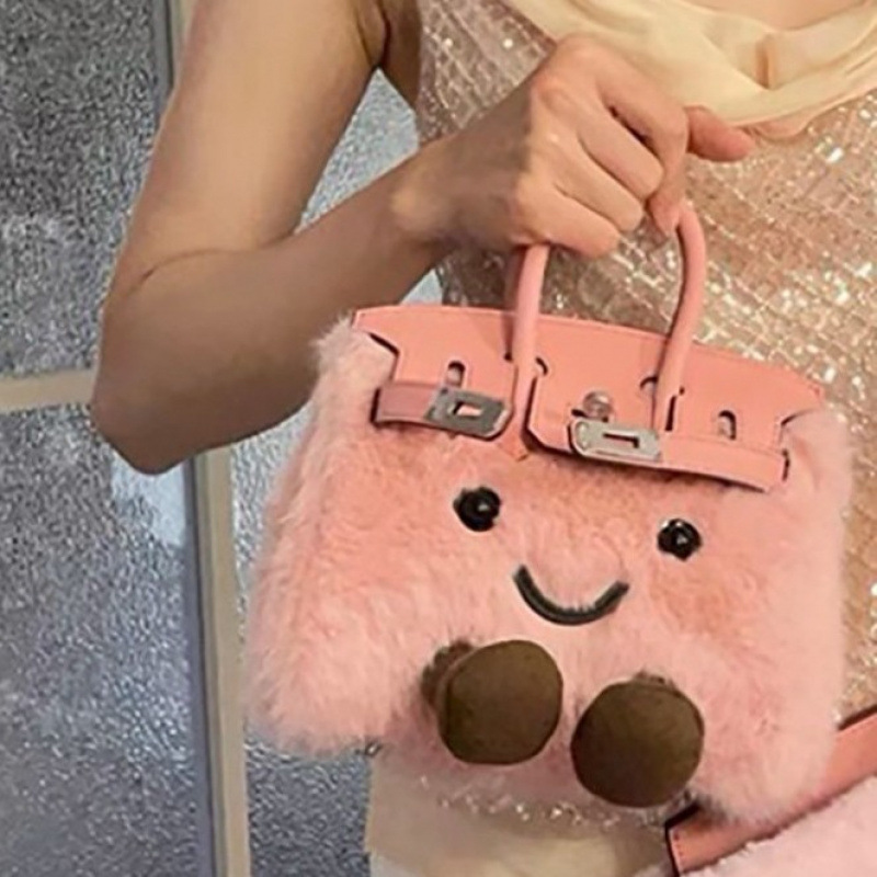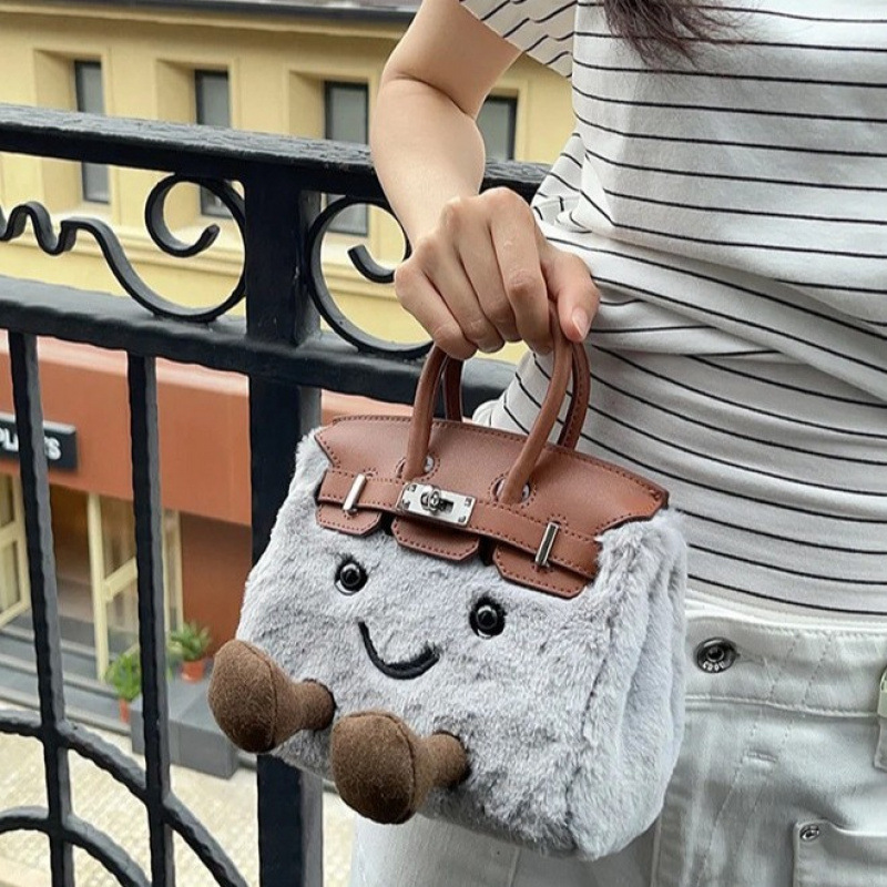 联名款可爱毛绒铂金凯莉包毛茸茸小精灵迷你手提