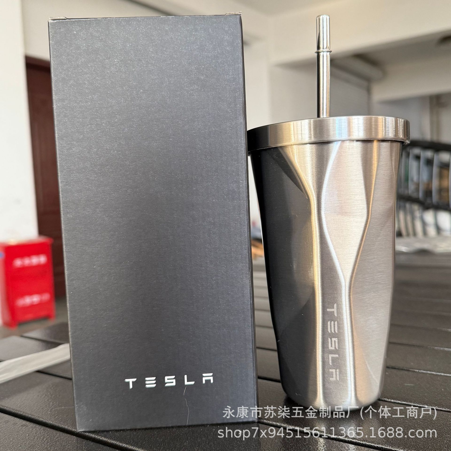 [Original Black Box] Tesla Tesla Water Cup Stainless Steel Straw Cup Car Water Cup Thermos Cup Popular Cup