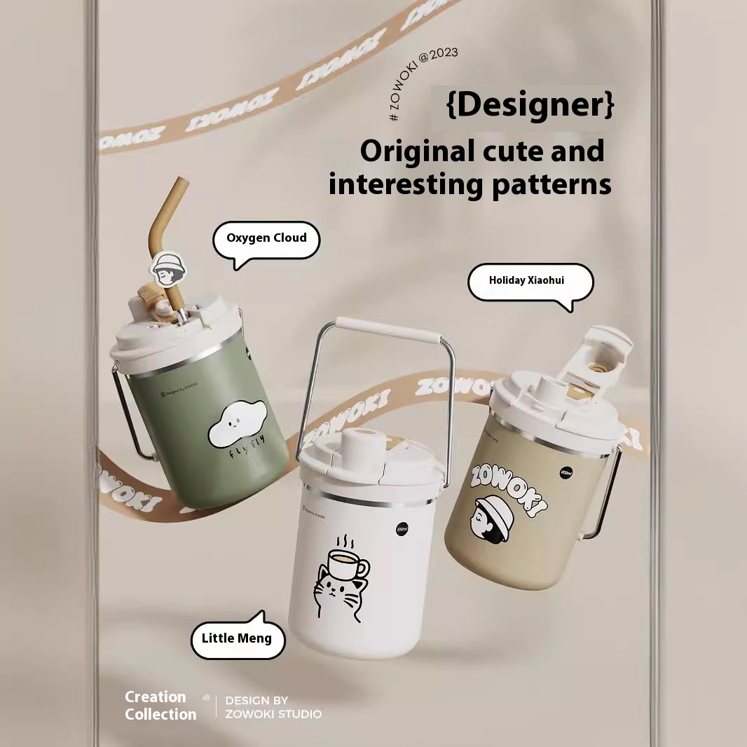 Zaowuji Thermos Cup 316 With Straw Water Cup Straw Cup Summer Women's Ulated Coffee Cup Women's Large Capacity