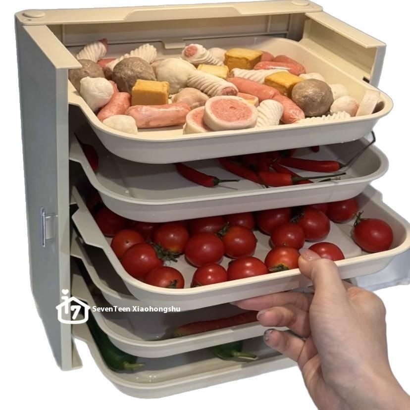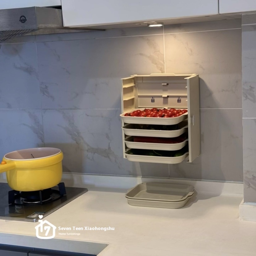 Household Multi-Layer Food Preparation Box Artifact Wall-Mounted Kitchen Food Preparation Rack Foldableable Multi-Functional Hot Pot Side Dish