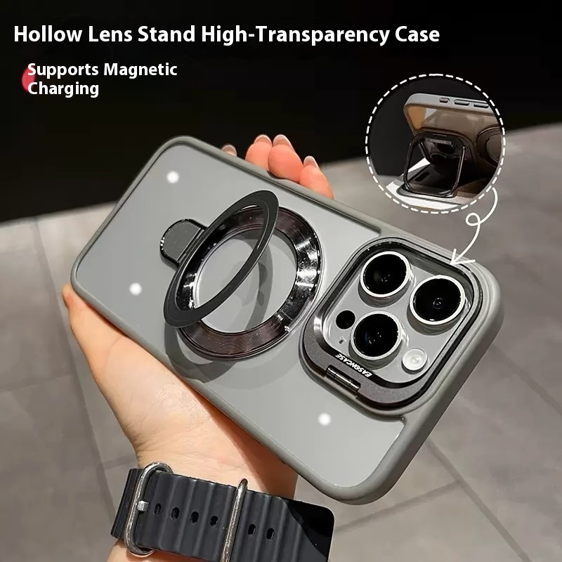 Suitable For Iphone17 Magnetic Lens Holder Transparent Missing Mark Mobile Phone Case Apple 16 With Lens Film Protective Cover 15