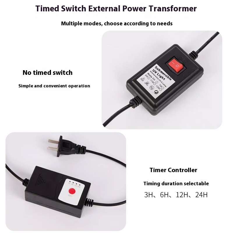 Fish Tank UV Germicidal Lamp UV Fish Pond Water Purification Algae Removal Diving Lamp Aquarium Disinfection Built-in UV Lamp