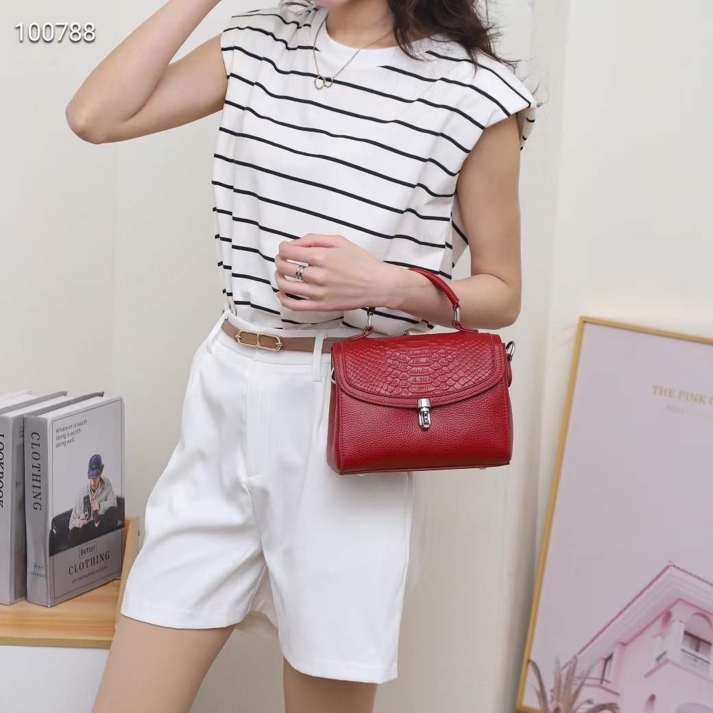 Bag Women's Autumn And Winter Fashion Retro Genuine Leather Women's Bag Casual All-match Crossbody Shoulder Lock Small Square Bag