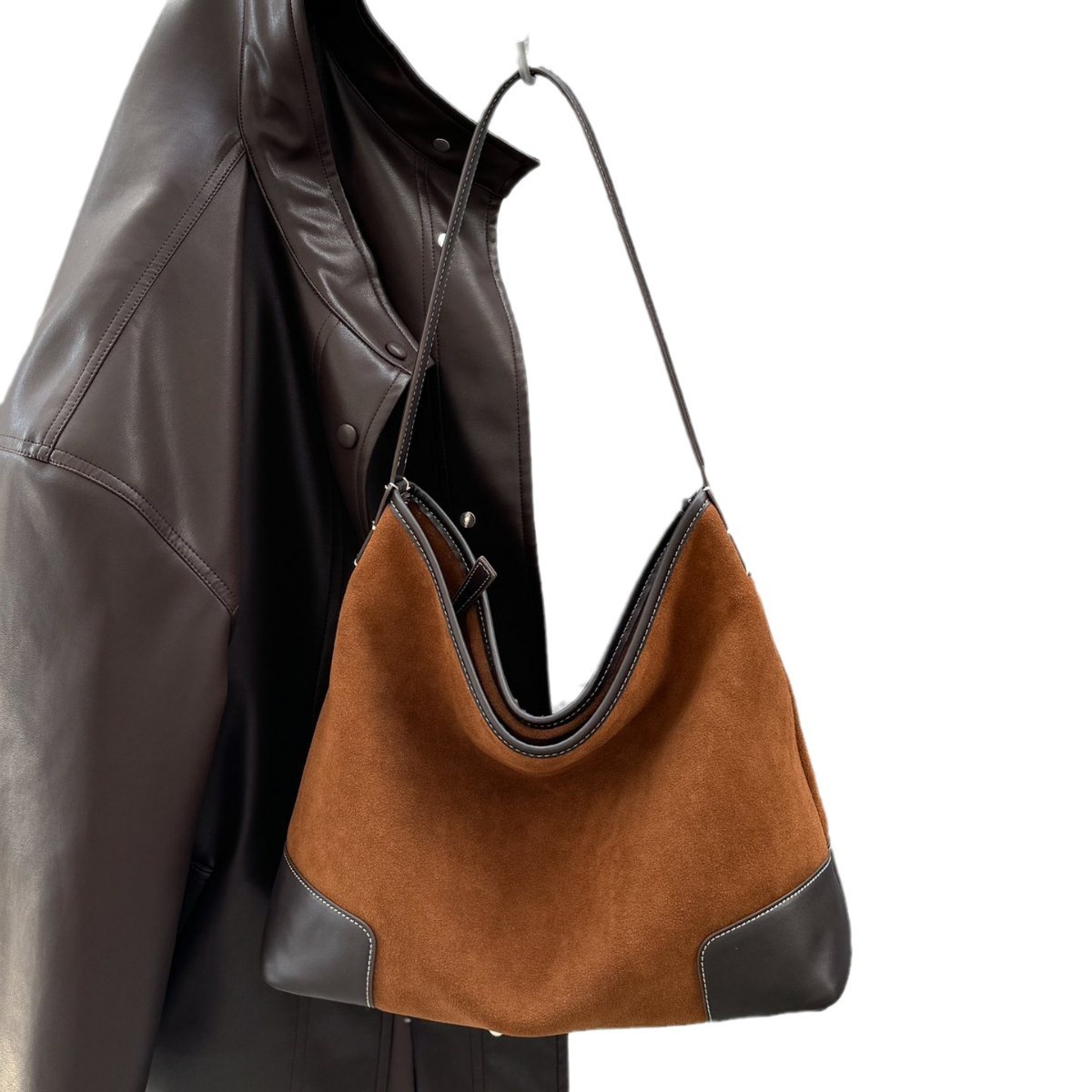 Autumn And Winter Suede Cowhide Women's Bag Large Capacity Casual Tote Bag Fashionable And Versatile Cross-Body Genuine Leather Armpit Bag For Women