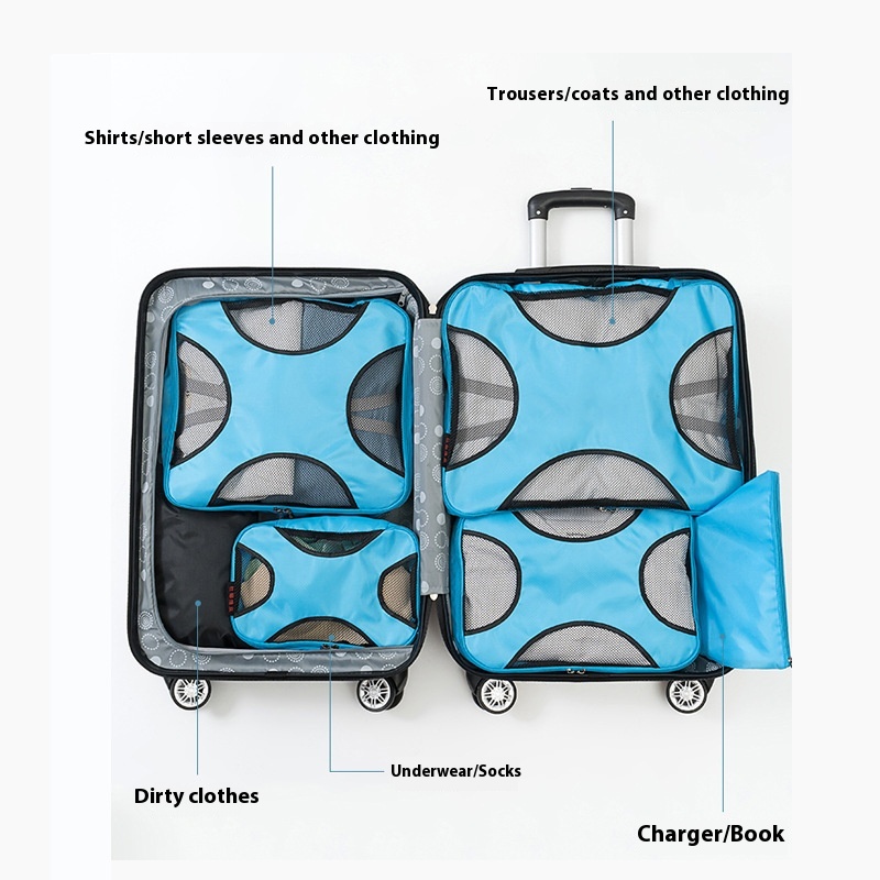 Suitcase, Clothing Organization And Storage Bag,6-piece Set, Travel Toiletry, Underwear, Shoe Packaging Bag,6-piece Set