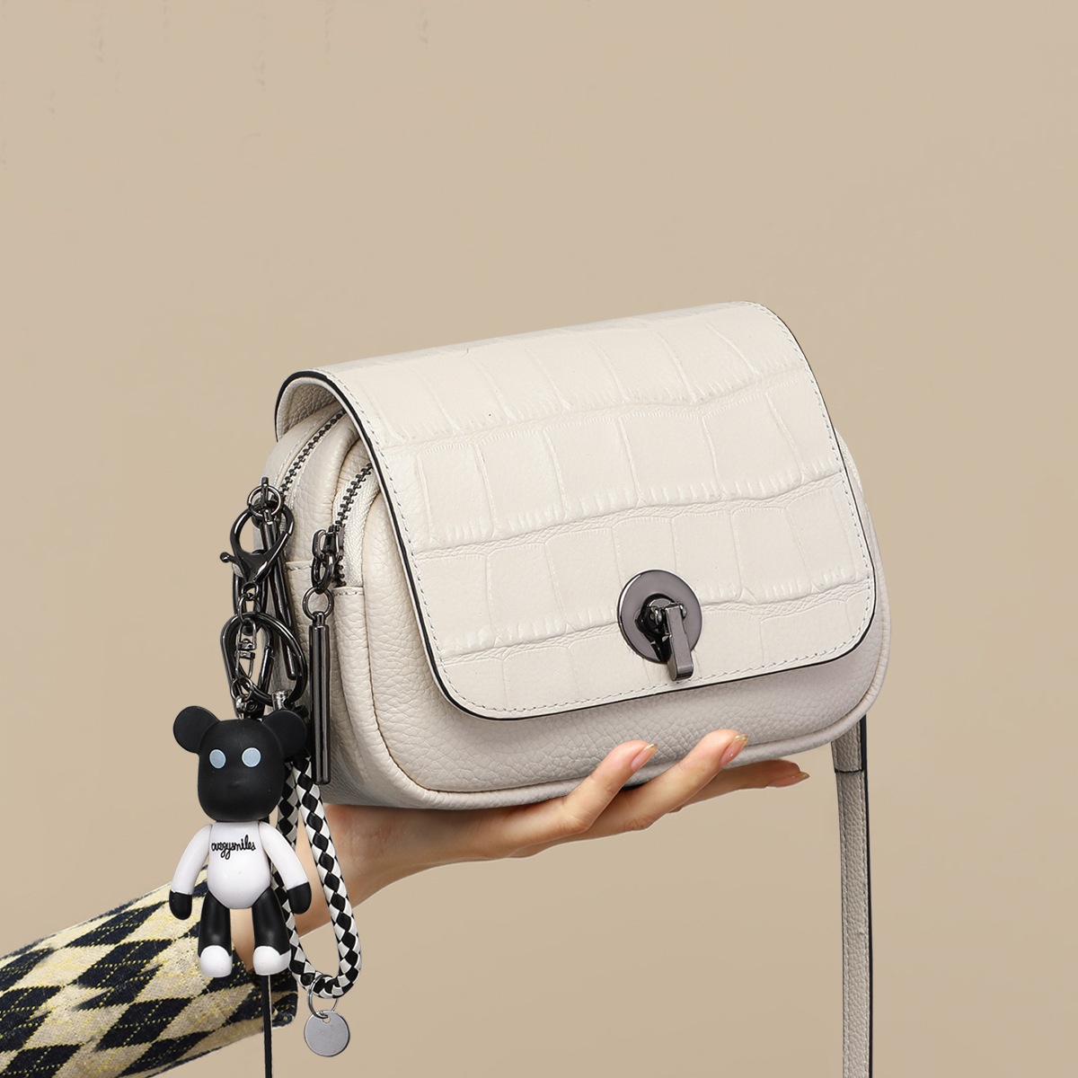 Bags For Women Winter Style Genuine Leather Fashion Crossbody Bag For Women Wide Strap Fish Pattern High-End Single Shoulder Small Bag