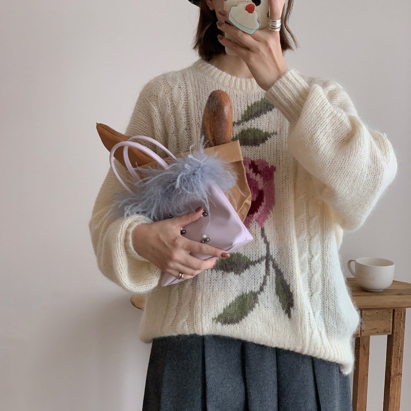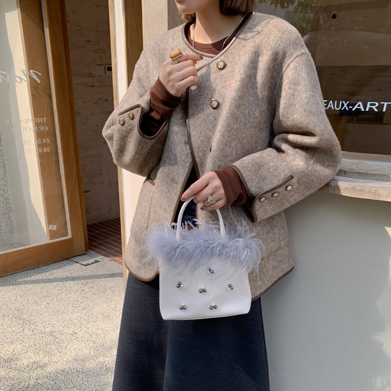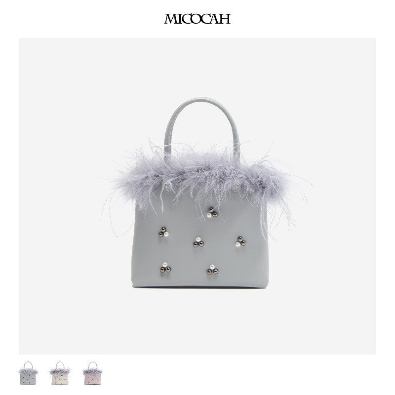 Micocah Winter Bag Women's Feather Beaded Handbag All-match Shoulder Crossbody Bag Original Niche