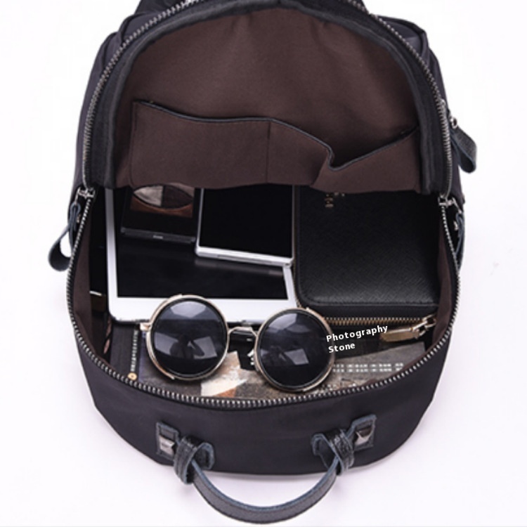 Fall/Winter Shoulder Back Women's Bag Nylon Oxford With Cowhide Korean Rivet Bag Travel Backpack A Generation Of Hair