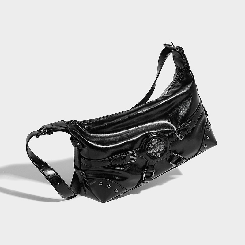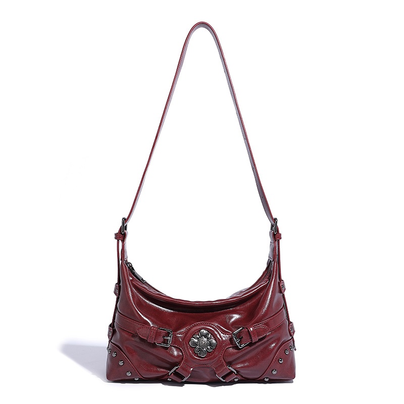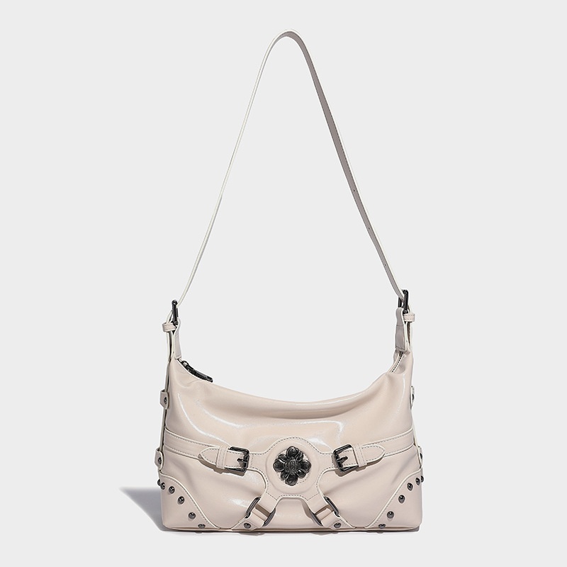 Korean Retro Millennial Hot Girl Fashion Rivet Design Motorcycle Bag Autumn And Winter Y Commuting Easiest For Match Shoulder Bag