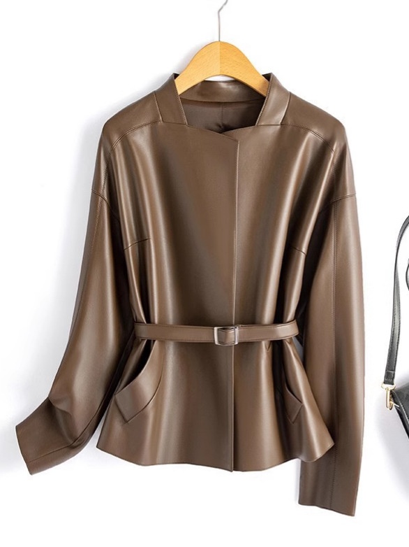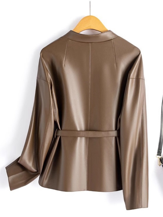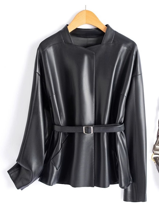 Spring Haining Genuine Leather Jacket Women's Short Korean Style Lace-Up Socialite Style Leather Jacket Sheepskin Jacket