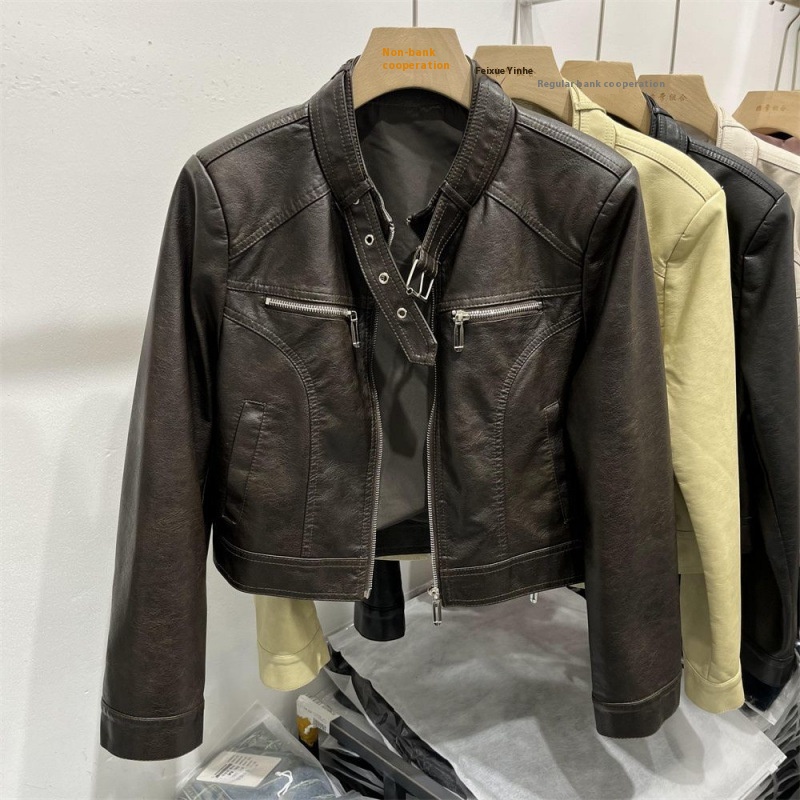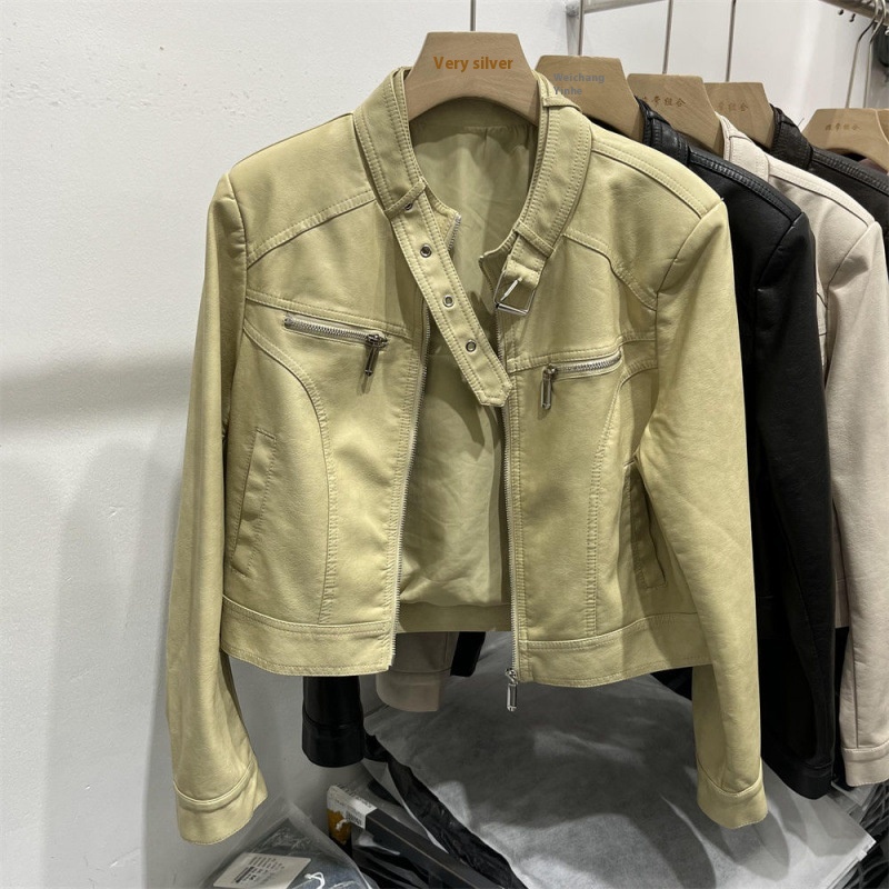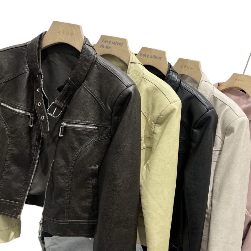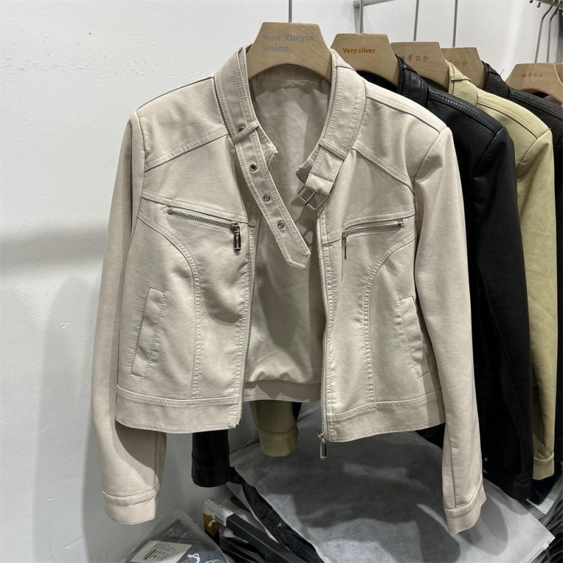 Spring Korean Style Design Sense Zipper Short Leather Coat Women's Short Coat Spring And Autumn Long Sleeve Biker Coat Casual Jacket