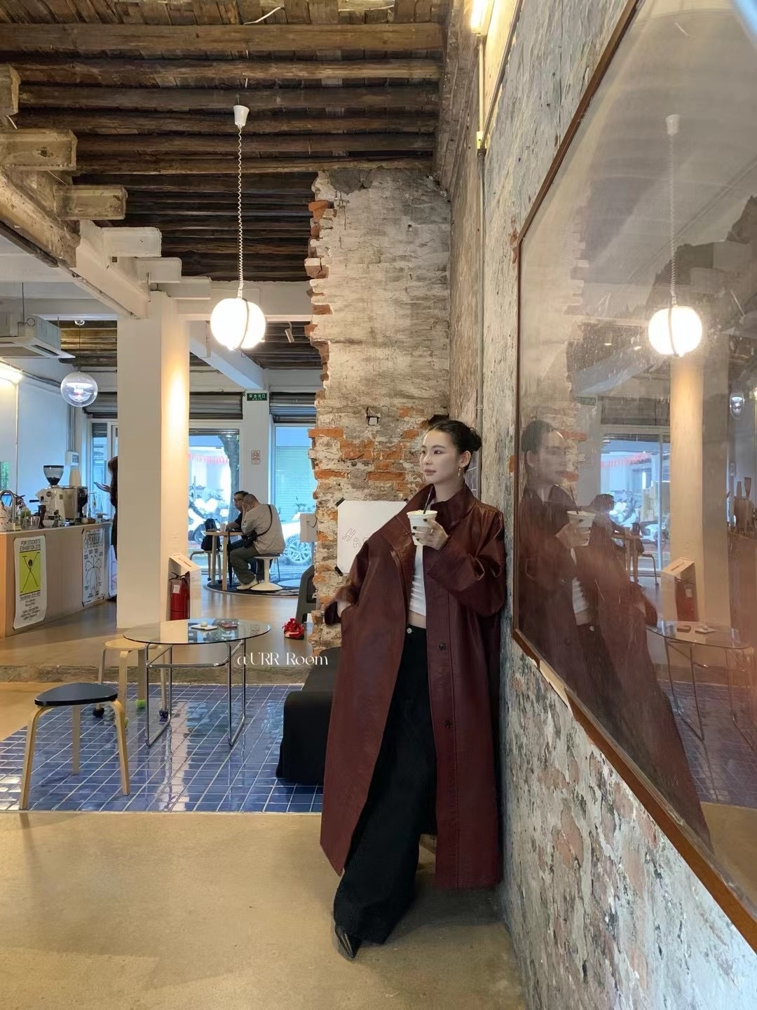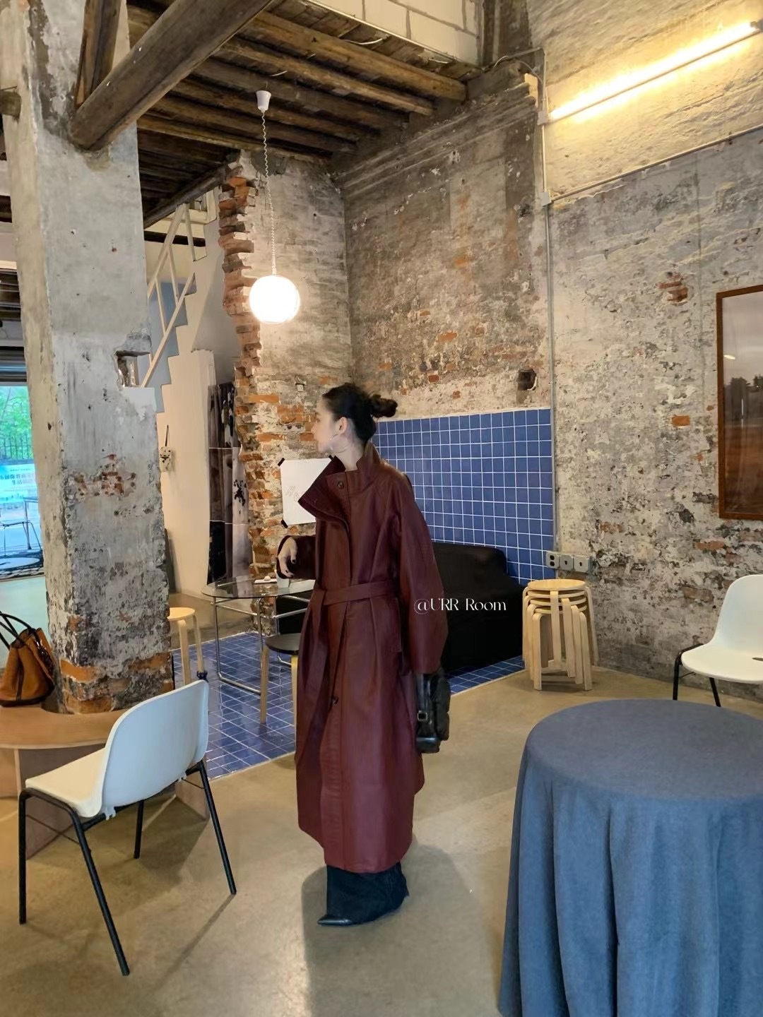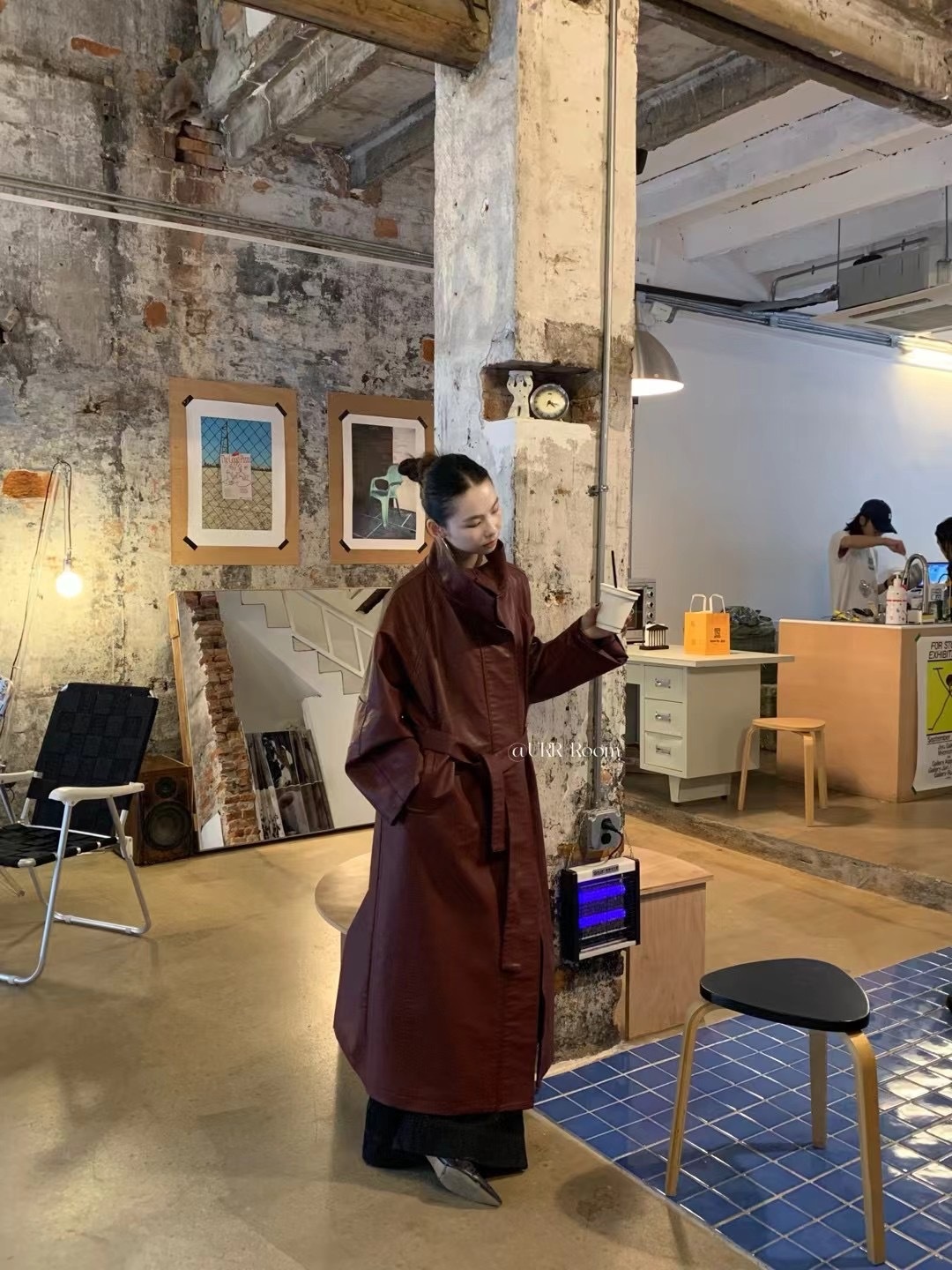 Urr RoomAw Autum Retro Original K-Style High-End Design Lace-Up Leather Windbreaker Outer