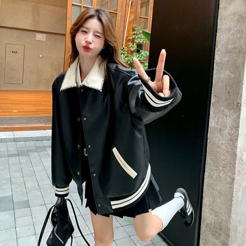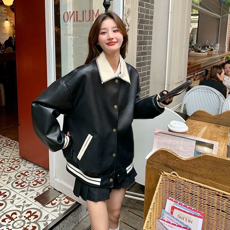 Black Street Little Leather Jacket Women's Autumn Korean Style Loose And Fashionable