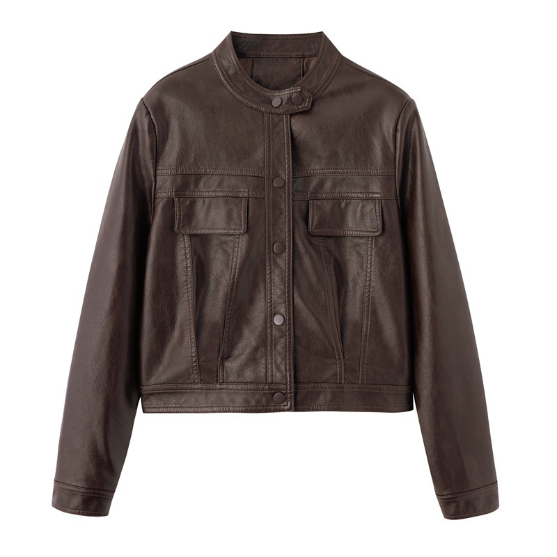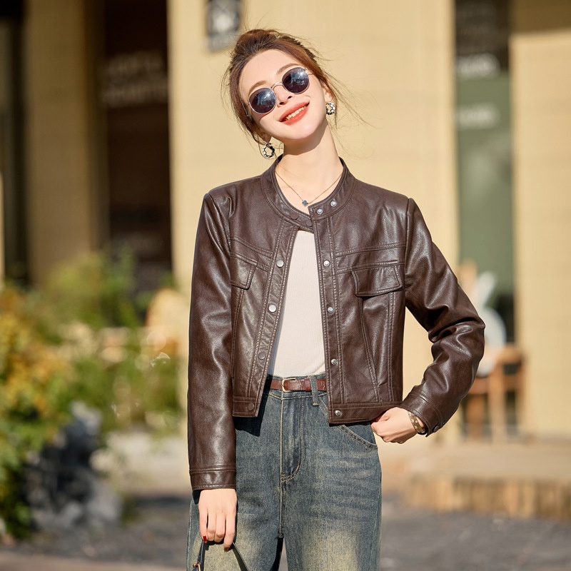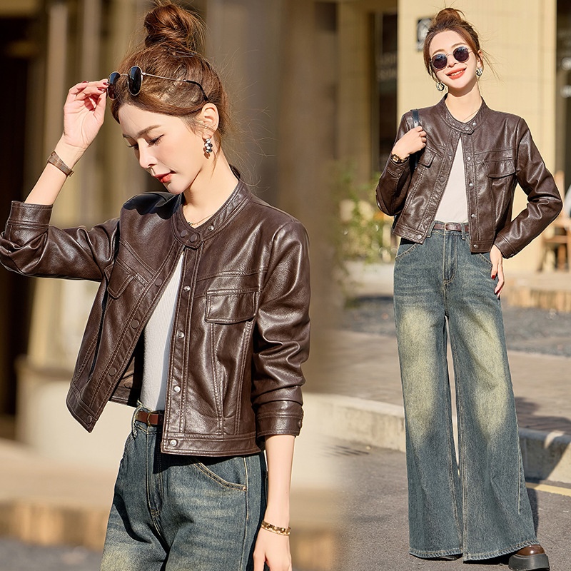 Haining Genuine Leather Women's Short Korean-style Slim-fit Crewneck Sheepskin Jacket For Petite