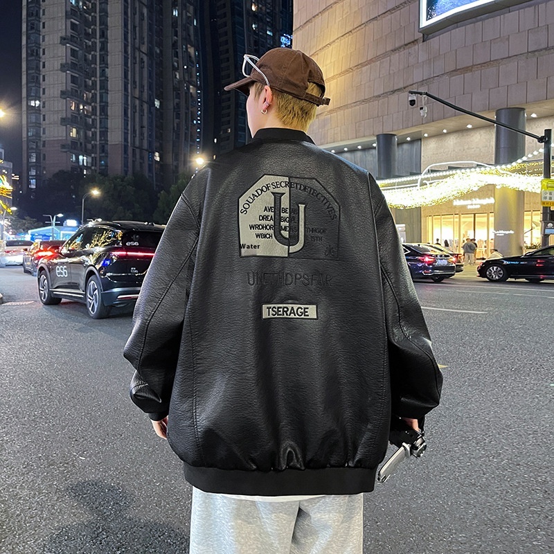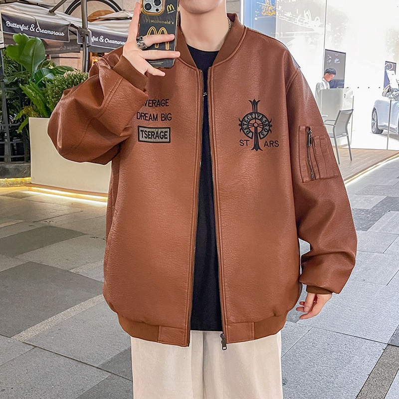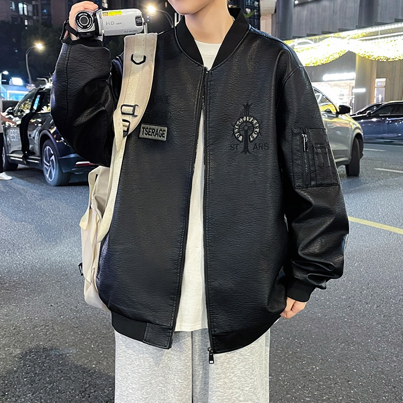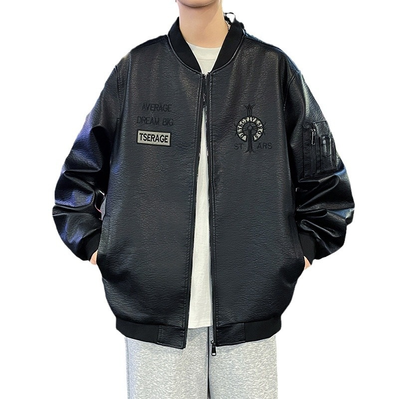 Korean-style Fashionable Handsome All-match Winter Flying Leather Jacket Embroidered Men's Jacket Spring And Autumn Biker Clothing Leather Jacket