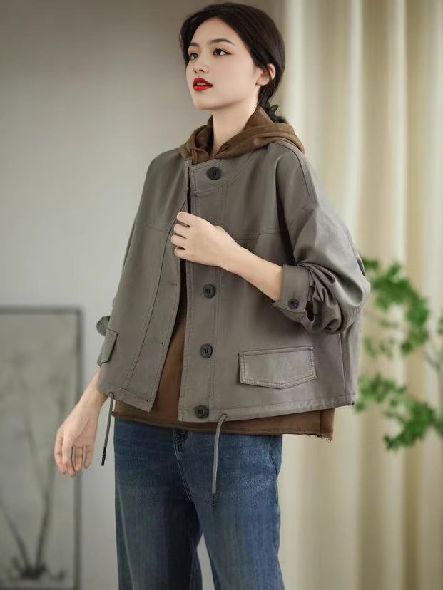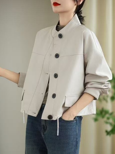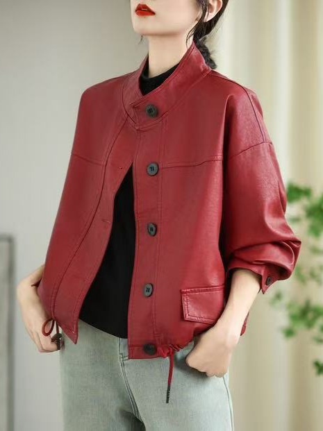 Spring Leather Jacket Women's Loose Casual Korean Style Preppy Style Long-Sleeved Jacket Top Fashion