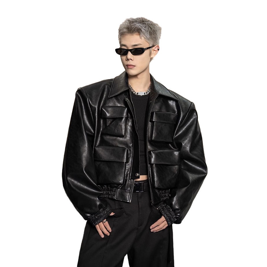 Korean Style Profile Design Sense Leather Jacket Men's Spring And Autumn Loose Casual All-match Jacket Top
