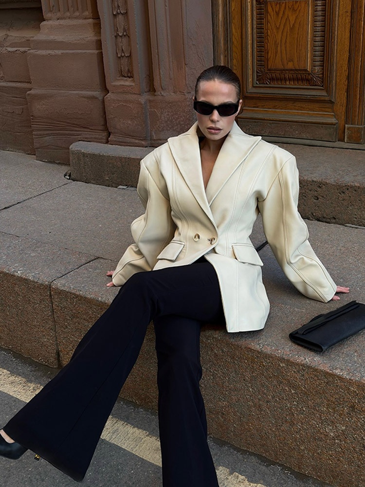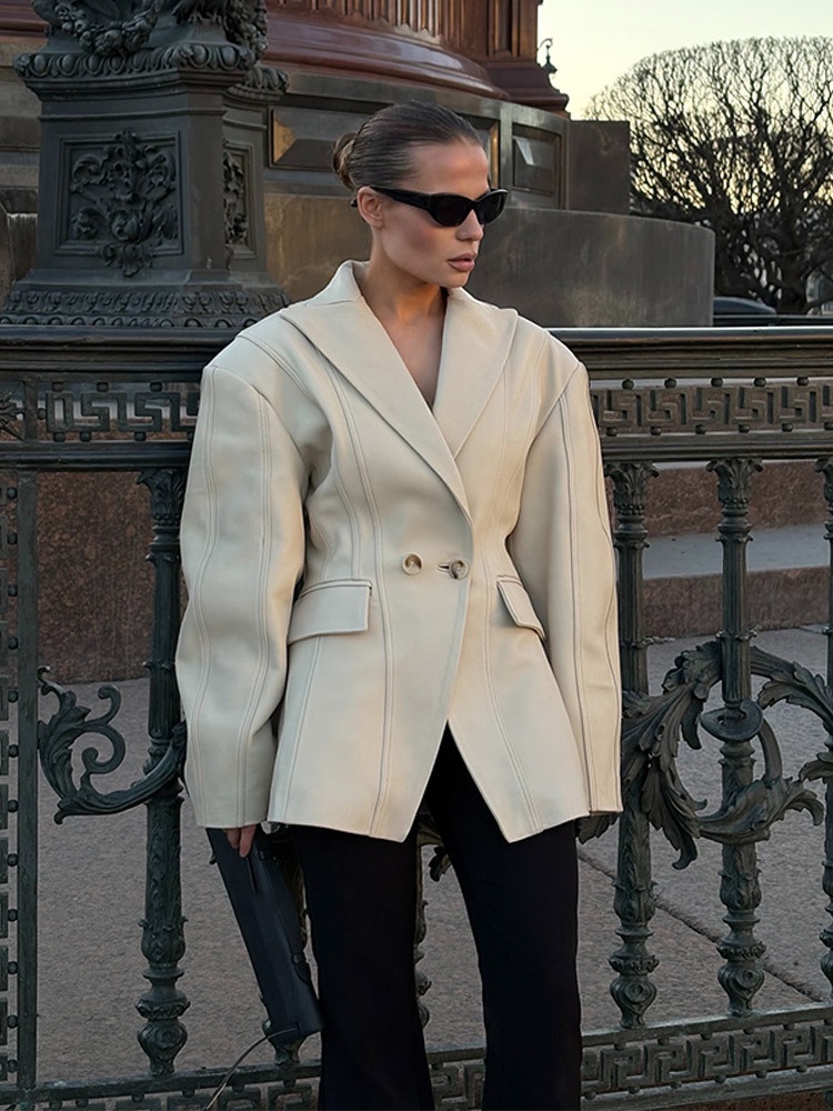 Spring Explosions Design High Sense Fried Street Suit PU Leather Jacket Korean Fashion Loose Top