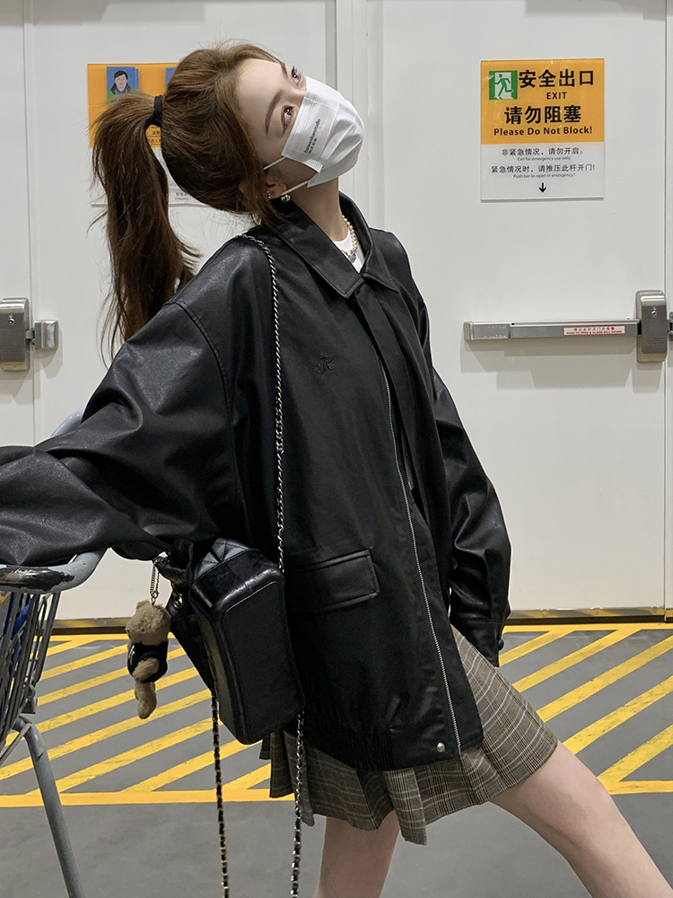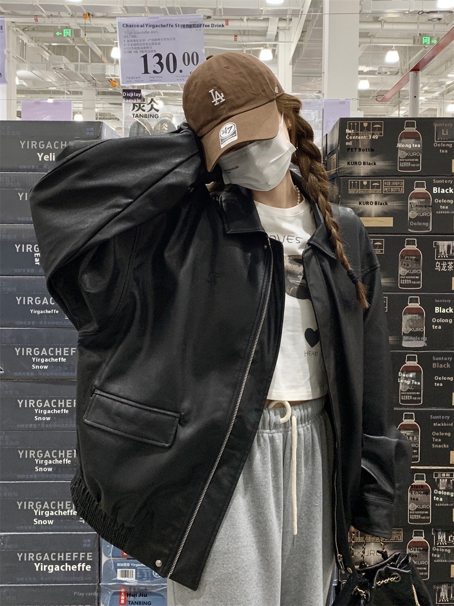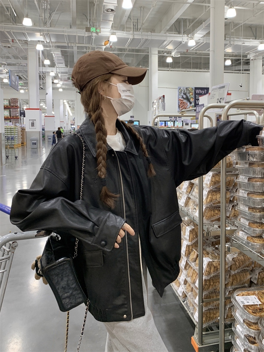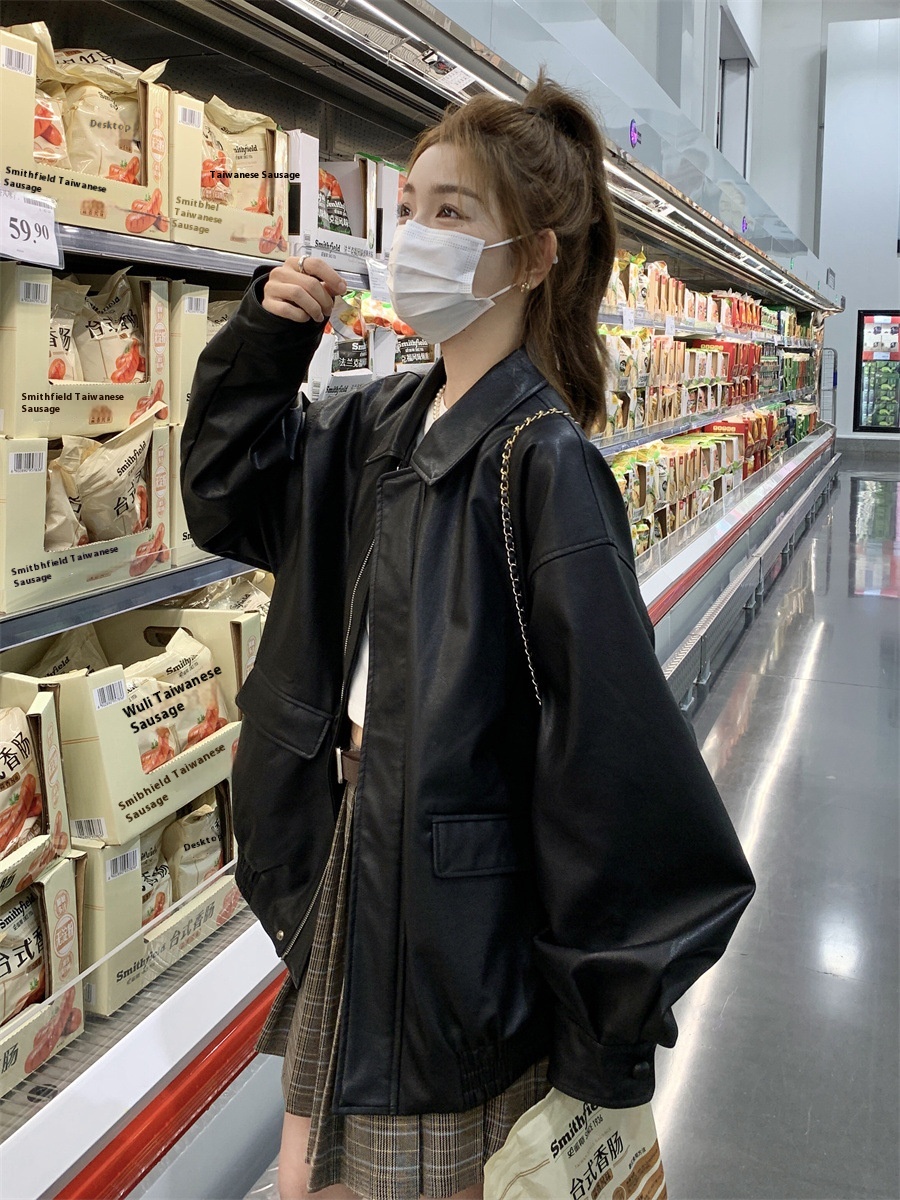 Black Retro Leather Jacket Women's Spring And Autumn High Design Sense This Year Popular Motorcycle Jacket Top