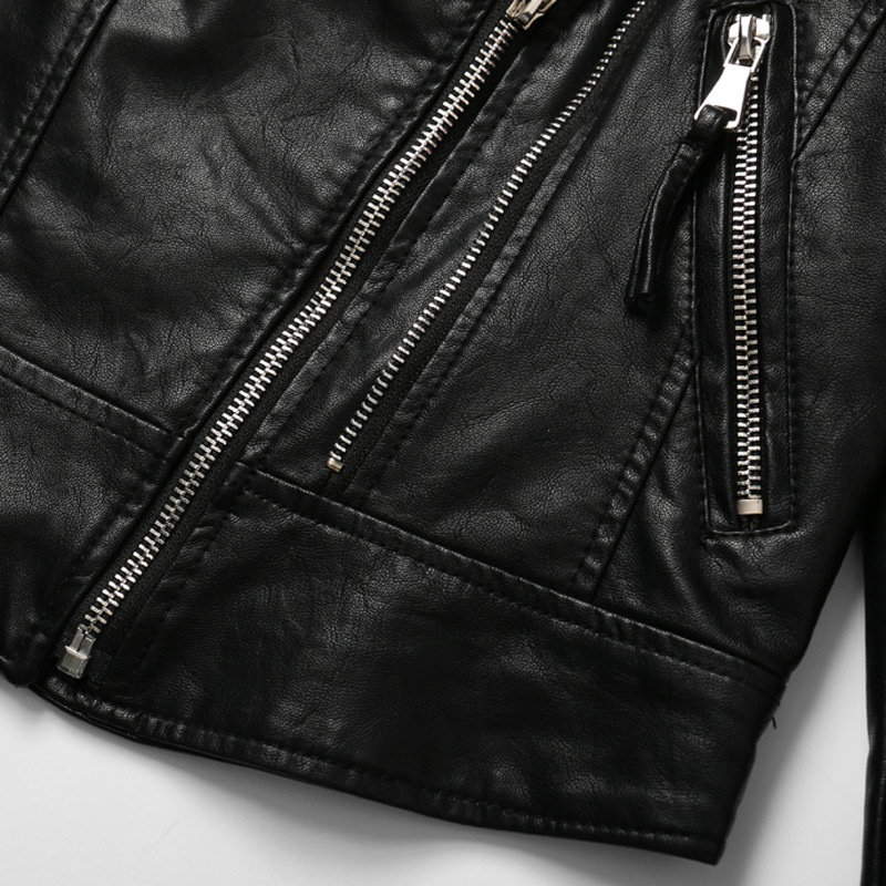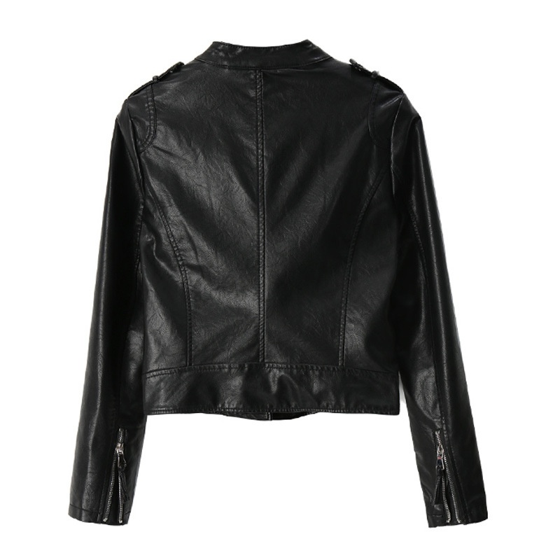 Vertical Collar Short Pu Leather Spring And Autumn Korean Fashion Casual Women's Motorcycle Clothing Leather Jacket Coat