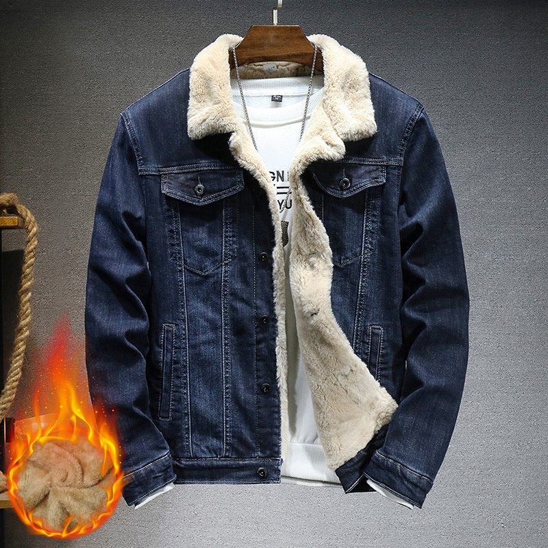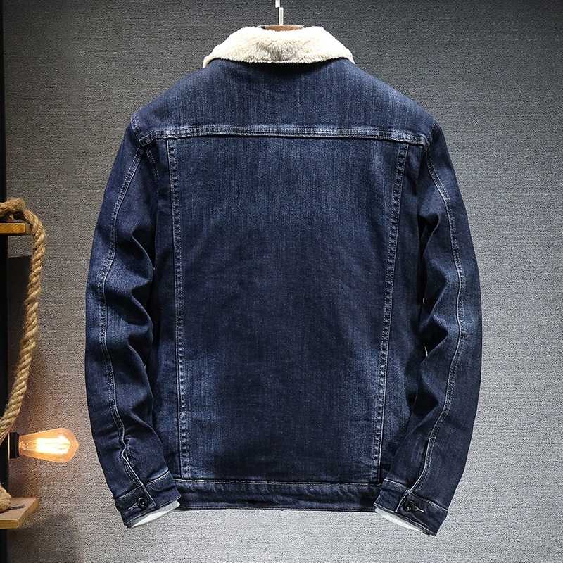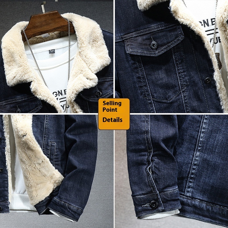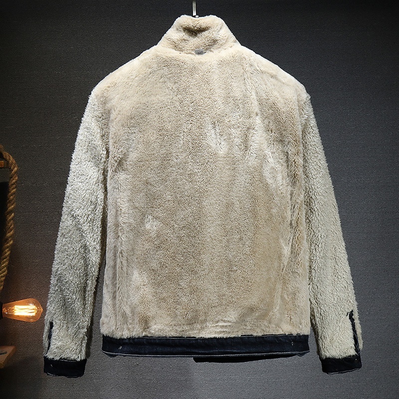 Thickened Warm Men's Cotton Jacket Winter Elastic Double Layer Imitation Rabbit Fur Men's Fleece-lined Denim Jacket