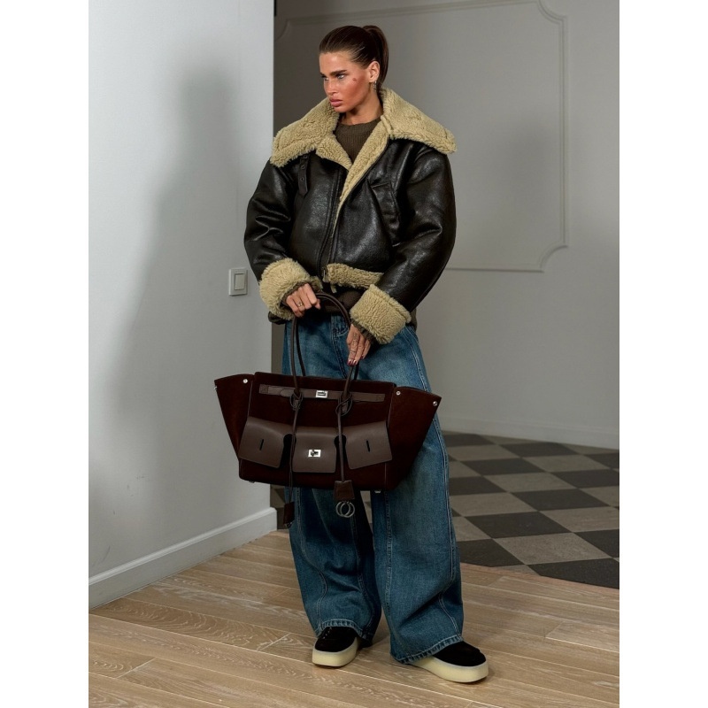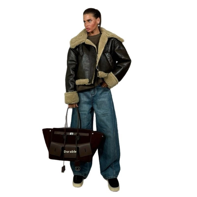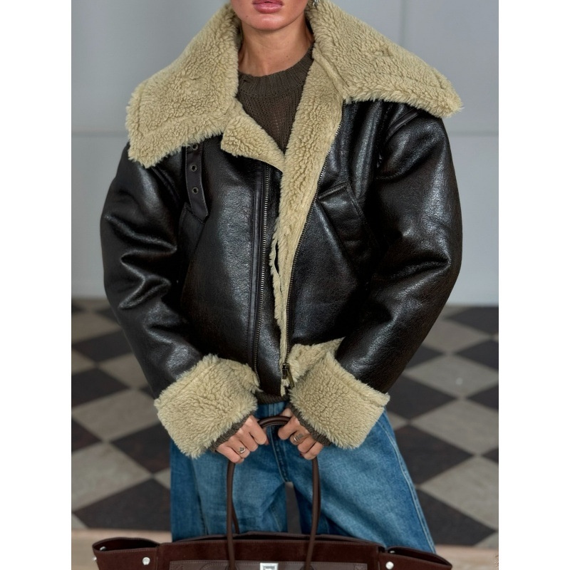 Autumn And Winter Stitching Fluffy Jacket Street-style Lapel Loose Short Fashionable All-match Women's Jacket
