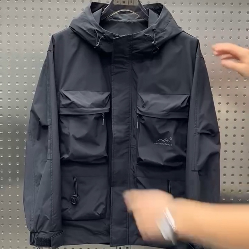 Workwear Jacket Versatile Fashion Handsome Spring And Autumn Windproof Multi-pocket Hooded Jacket