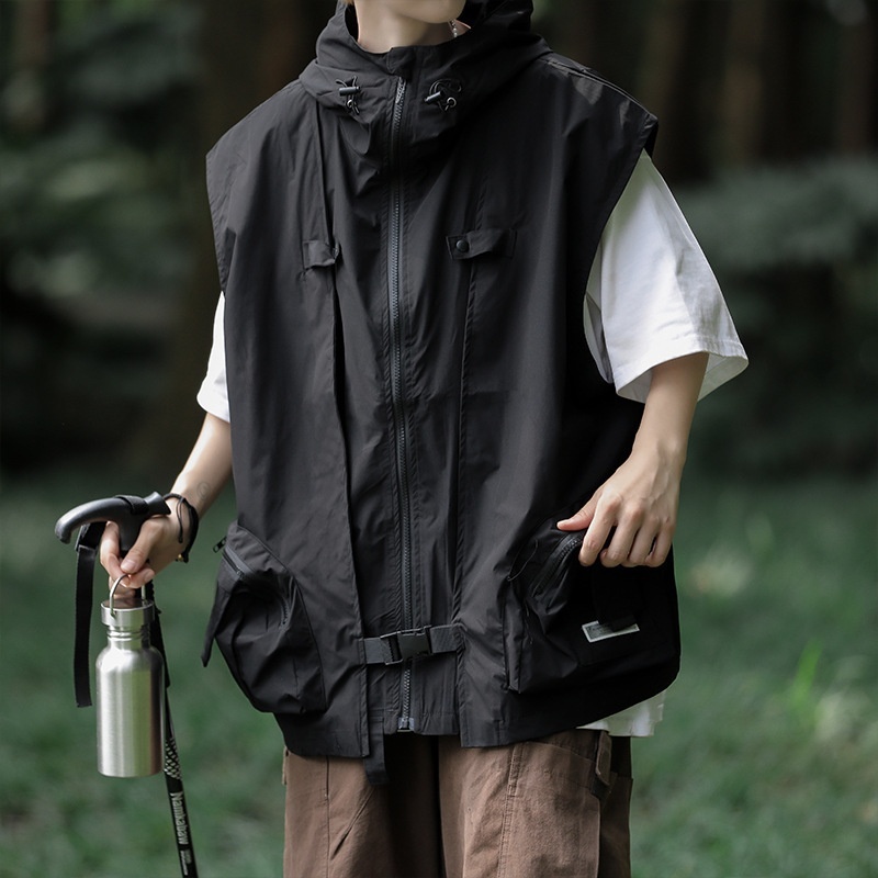 Tactical Function Japanese Style Tooling Jacket Vest Men's Popular Brand High Street Fashionable Casual Loose Vest Jacket