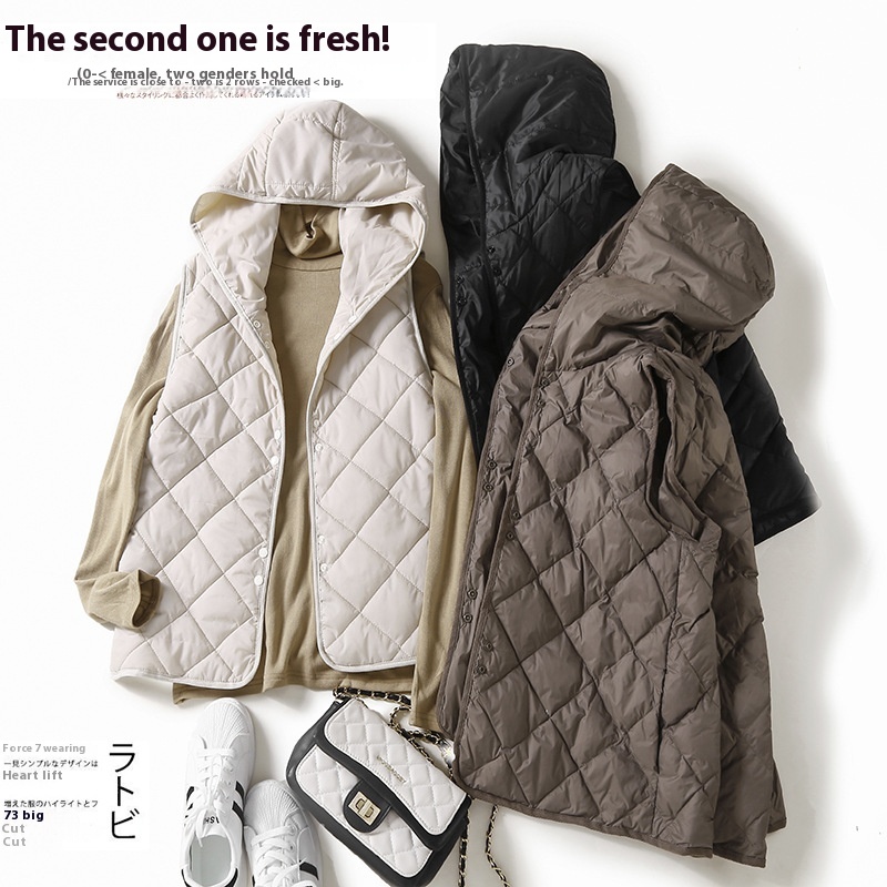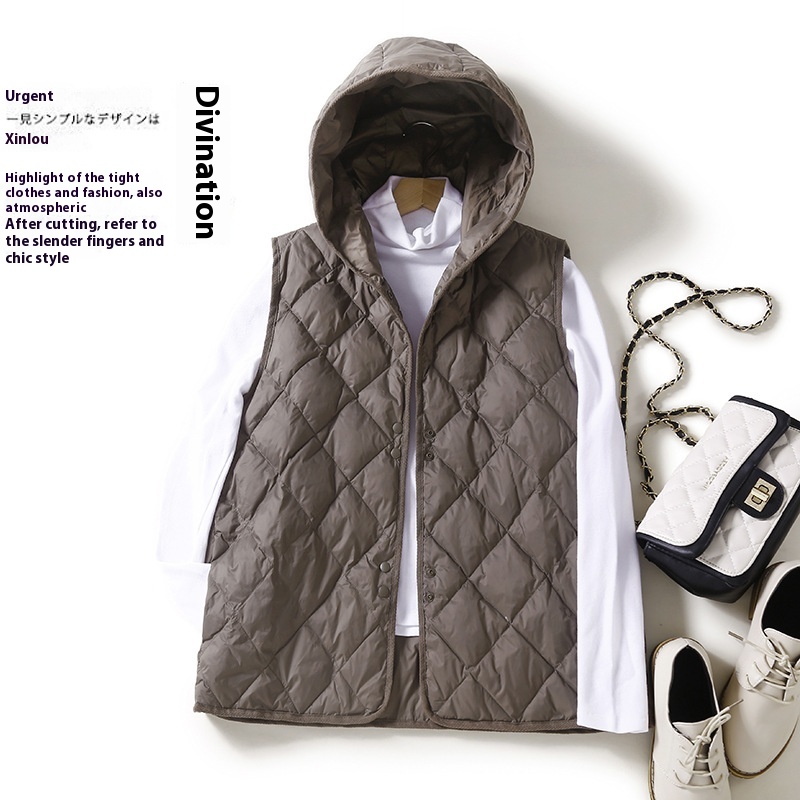 Autumn Style Lightweight Warm Down Hooded Vest Feminine Loose Sleeveless Jacket