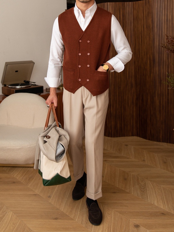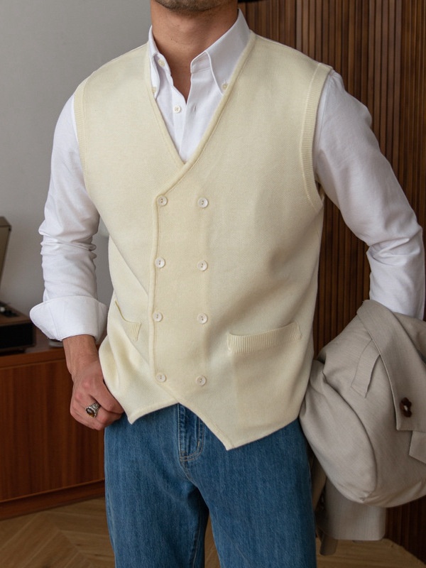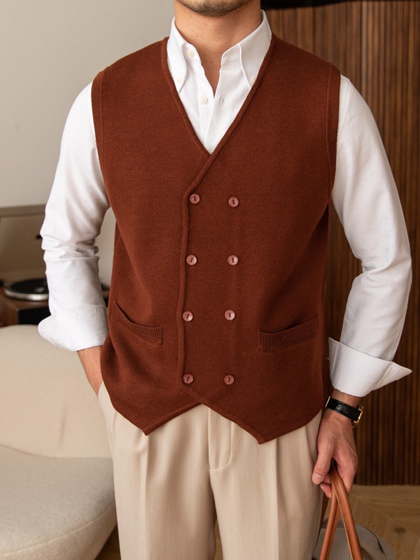 Double-breasted Knitted Waistcoat Men's Autumn And Winter Japanese Vintage Sweater Vest Fashionable Handsome Outerwear Cardigan Waistcoat