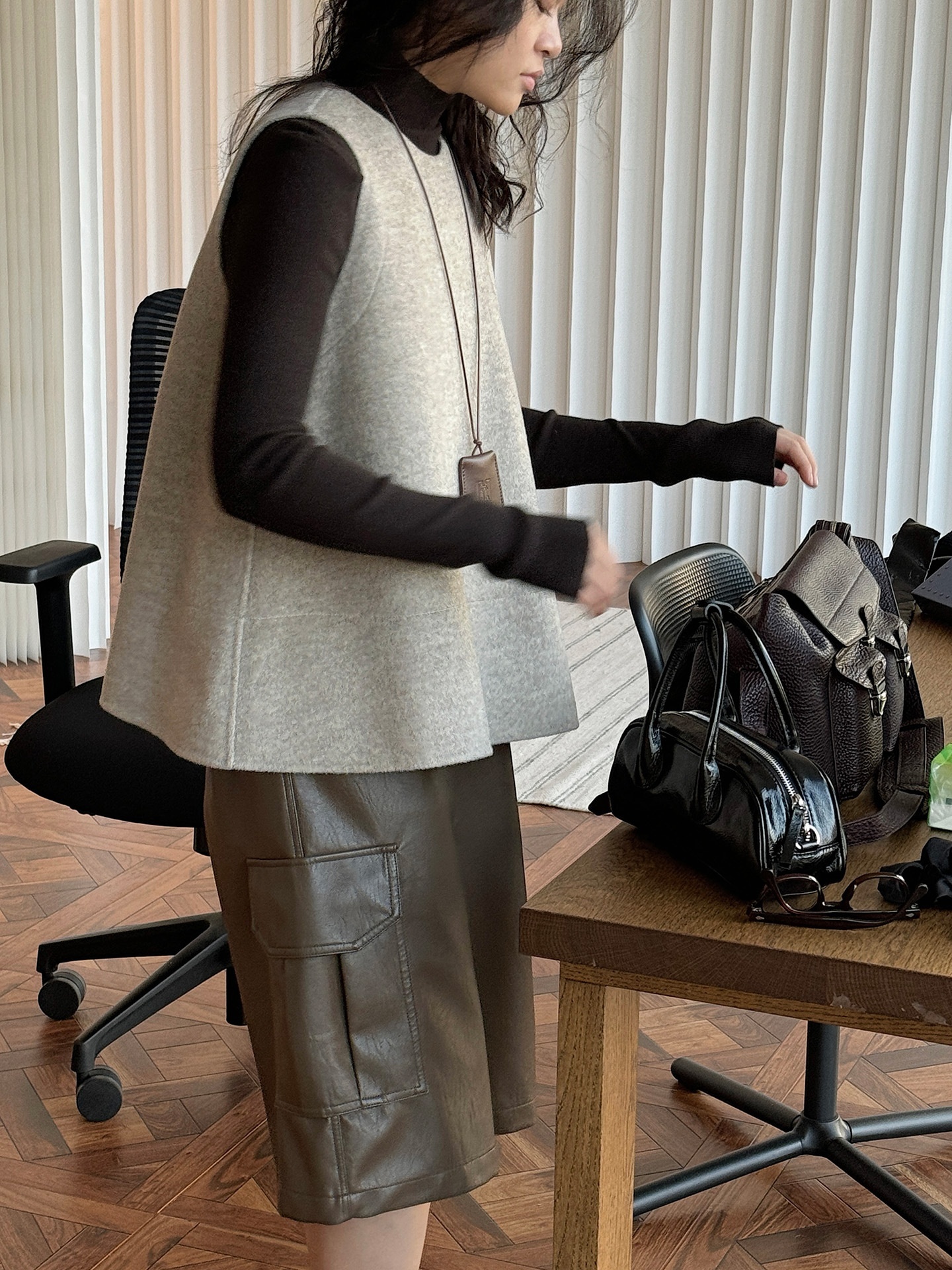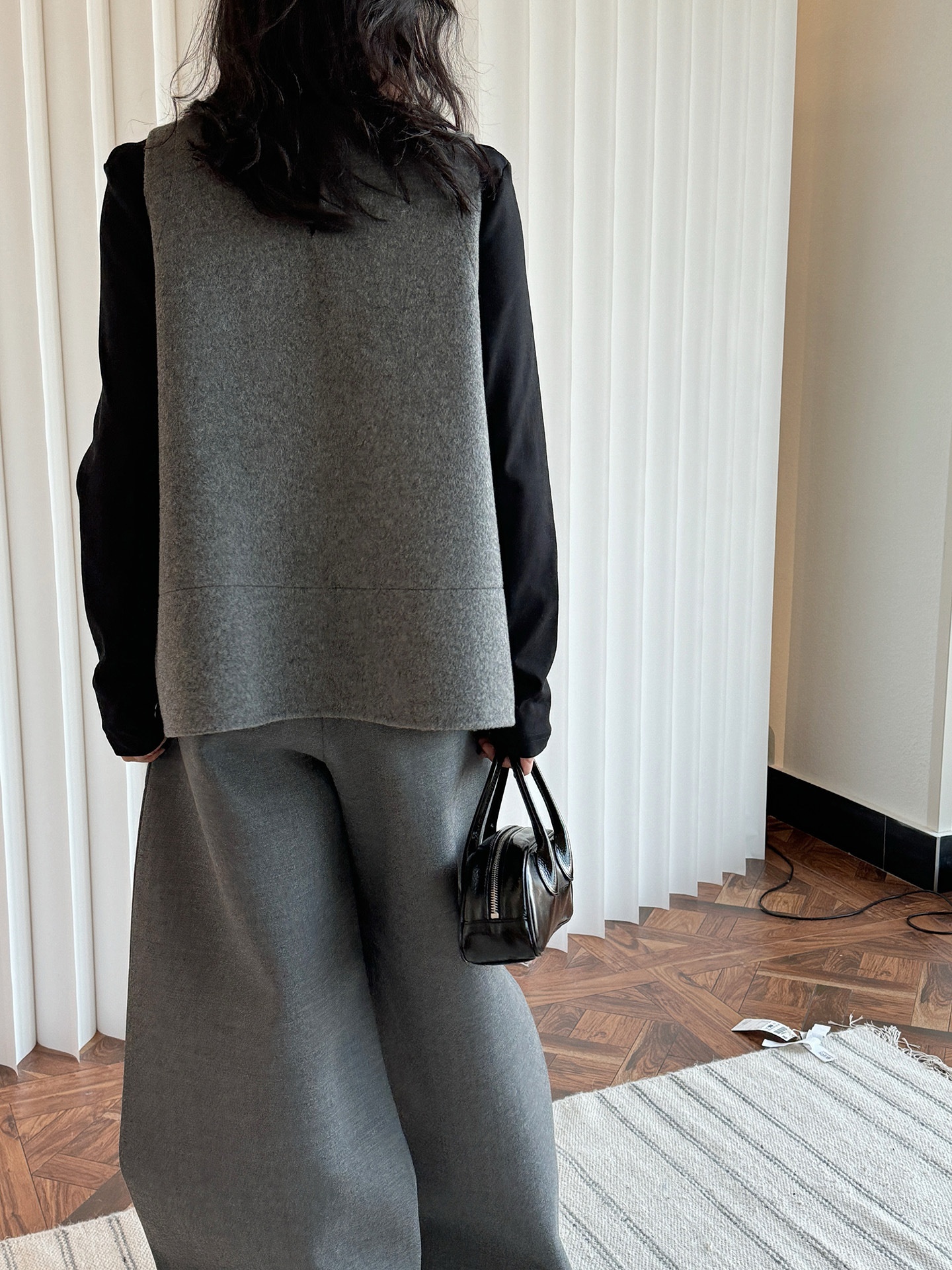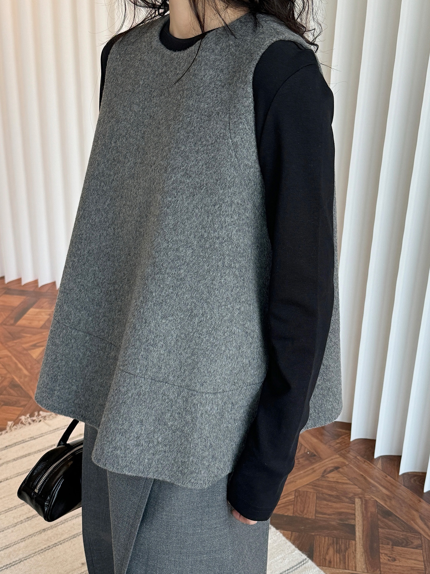 Winter Japanese-Style Fashionable Layered Wool Double-Sided Gray Vest A-Line Doll Slimming Top For Women