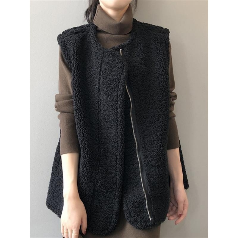 Autumn And Winter Japanese Lamb Wool Vest Women's Outer Wear Vest Coat Korean Style Loose Two-sided Waistcoat