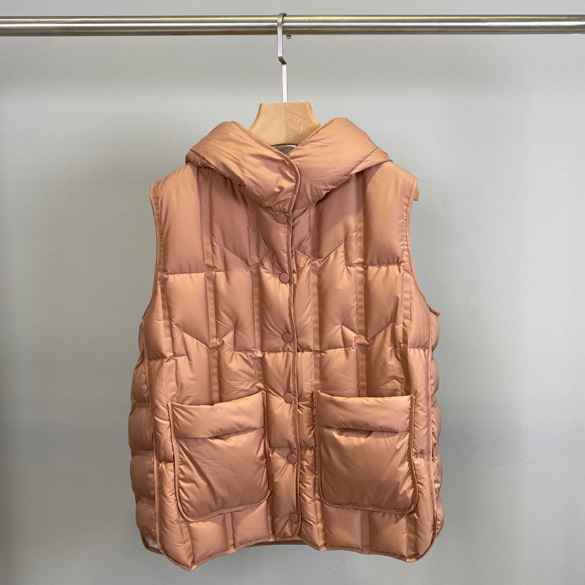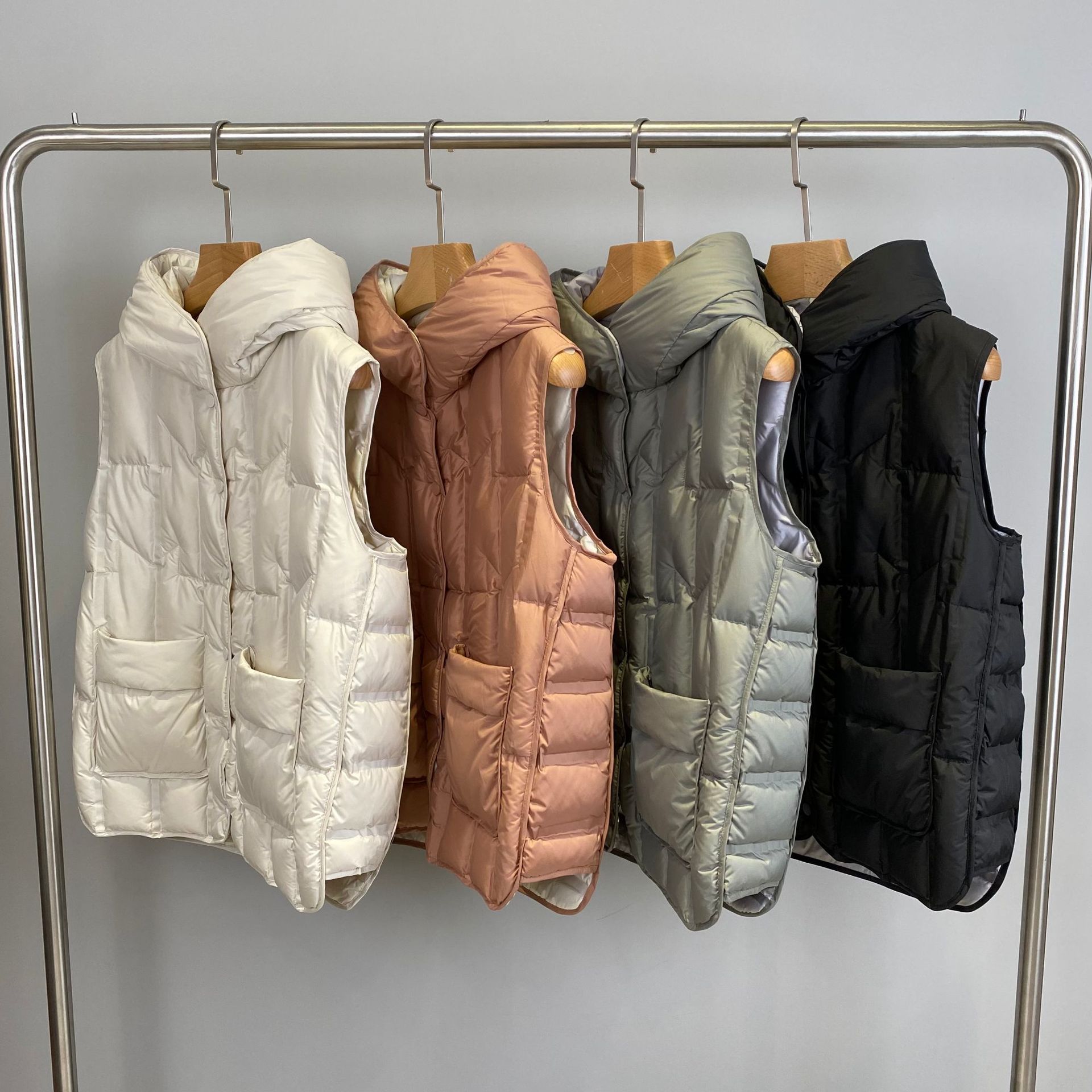 Japanese Style Down Vest For Women, Lightweight White Duck Down Jacket, Hooded, Fashionable And Versatile Vest Jacket